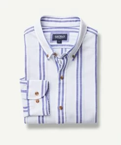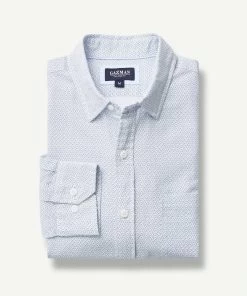 Tailored Linen Blend Geo Print Long Sleeve Shirt – Pale Blue