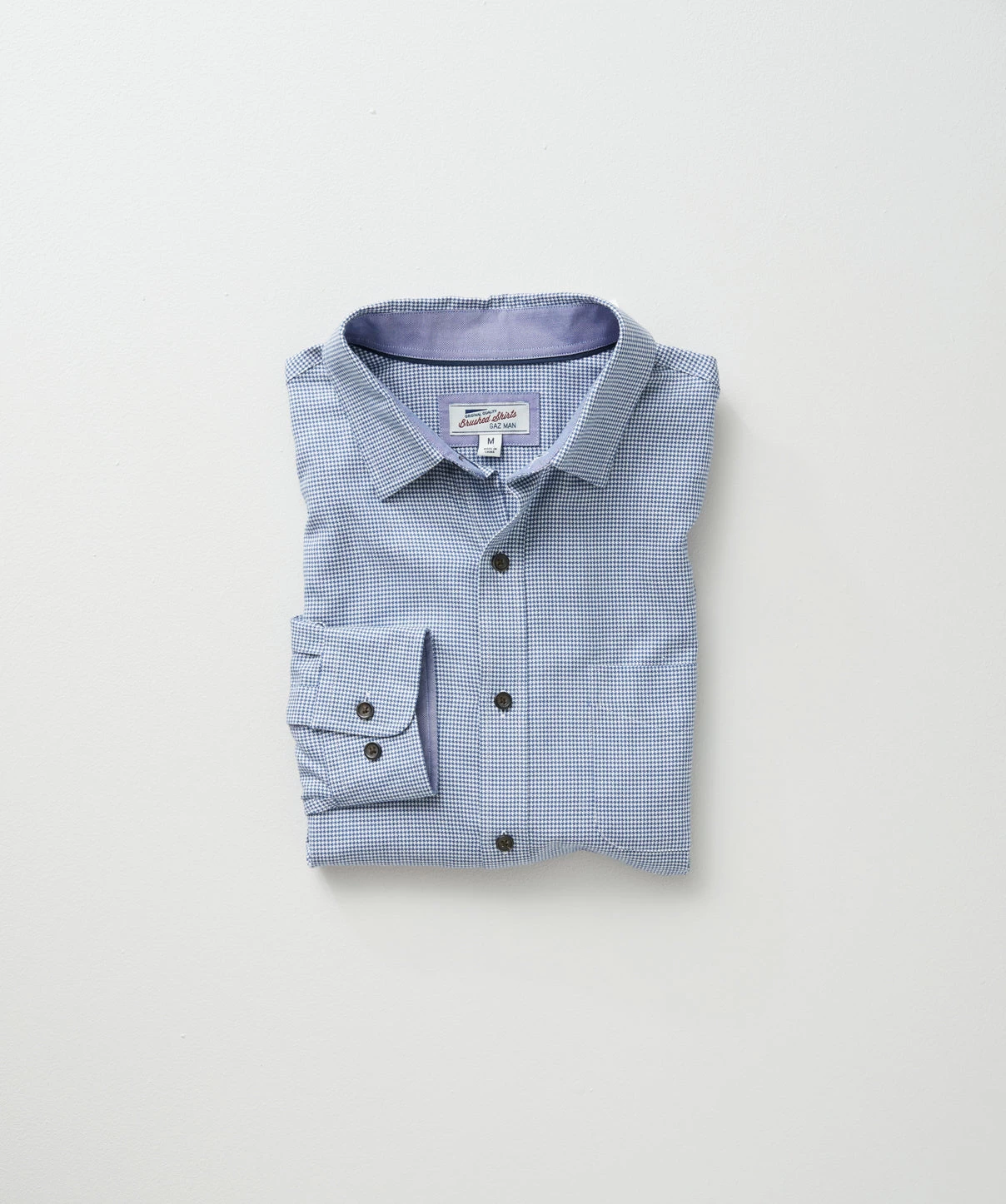 Our brushed twill shirts are a winter favourite thanks to their thick brushed cotton finish. This charcoal shirt features a small houndstooth check which pairs together nicely with jeans or chinos.