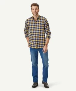 With a subtle highlight of yellow, one of the seasons trend colours, this brush twill shirt has an effortless casual look. The double brushing technique also makes this shirt one of the most comfortable & warm styles in your wardrobe. Style the box check with your favourite jeans or a modern chino for smart casual style. Available in chocolate and golden yellow.