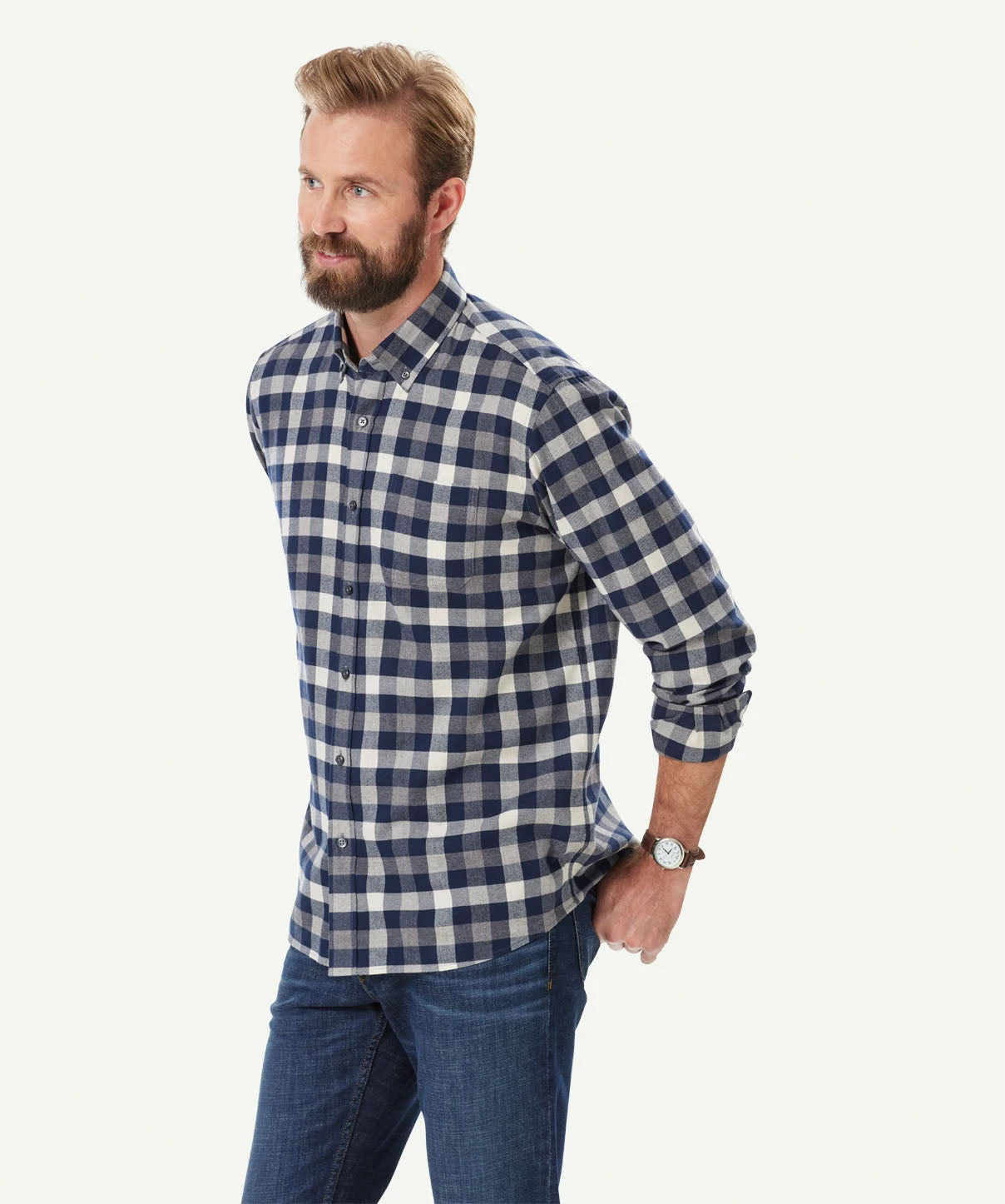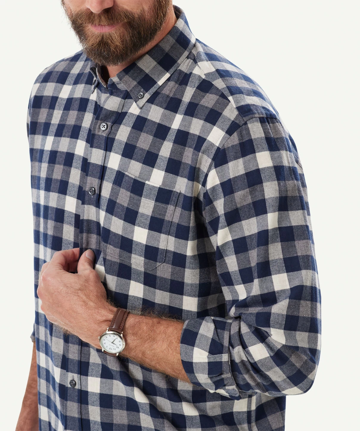 The Brushed Twill Box Check Long Sleeve Shirt is a stylish and comfortable addition to your winter wardrobe. Made from quality, easy to iron cotton, it features a classic box check pattern, button-up front, and a smooth feel on the skin . Dress it up with your favourite chinos or jeans for casual style.