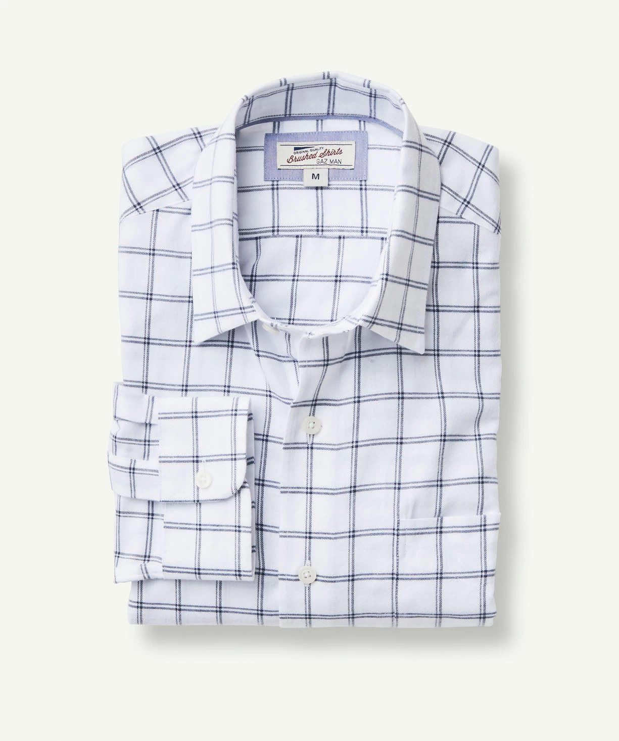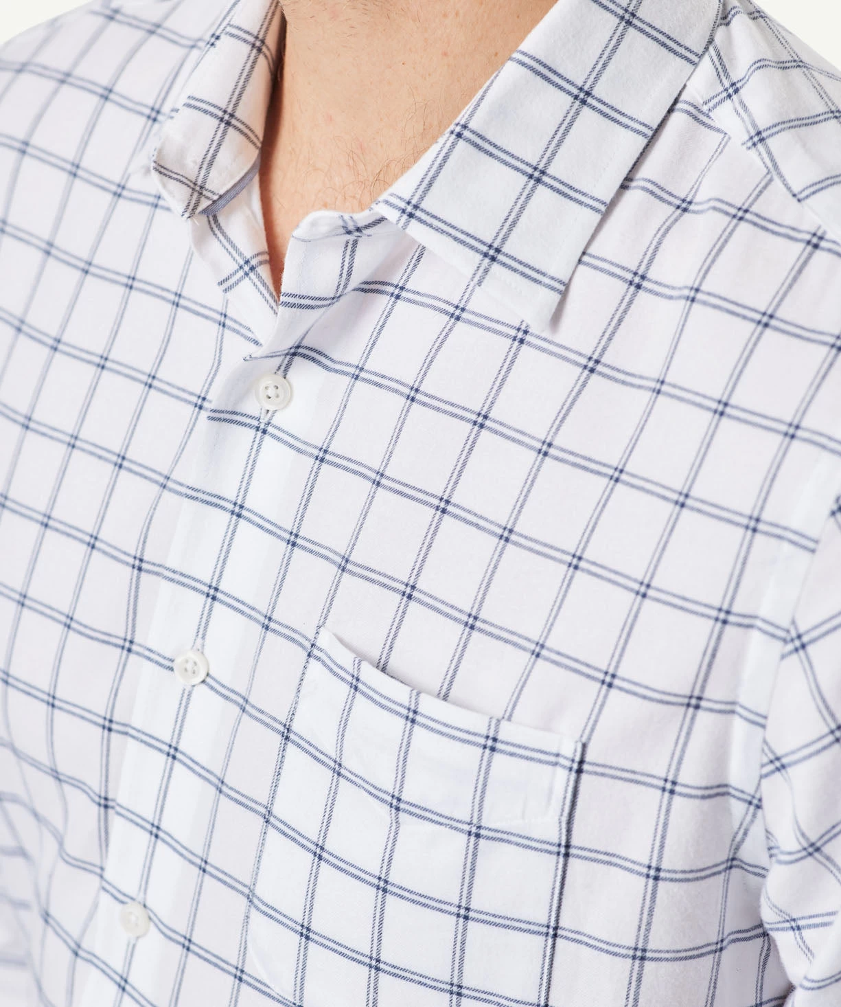 The brushed twill material in our Brushed Twill Check Long Sleeve Shirt provides a soft touch that’s comfortable all day long. Wear buttoned up and tucked in with your favourite chinos for a modern office look or layer with a plain tee shirt and your favourite GAZMAN jeans for a casual weekend look. Available in White and Slate.