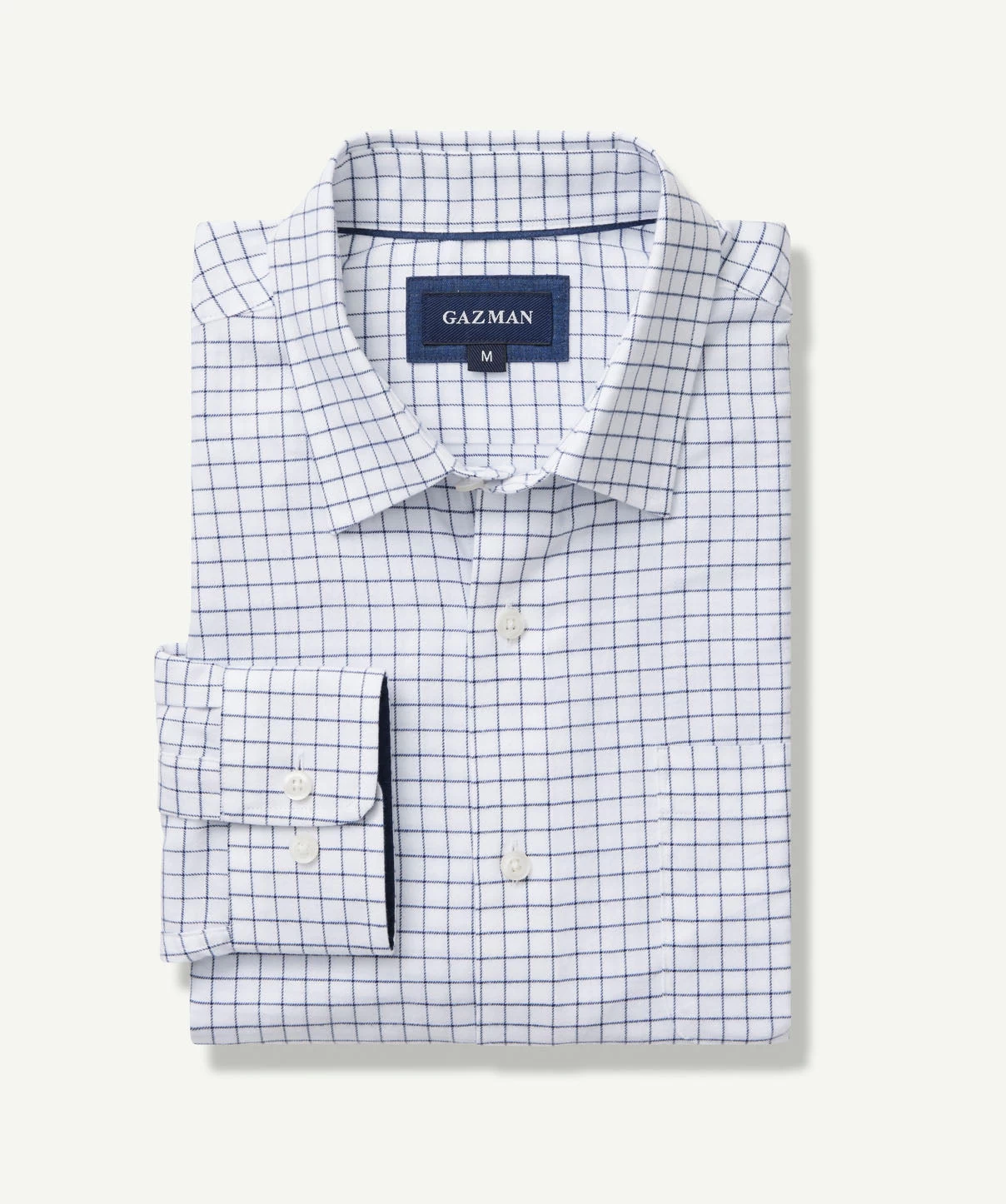 Brushed Twill Grid Check Long Sleeve Shirt – White