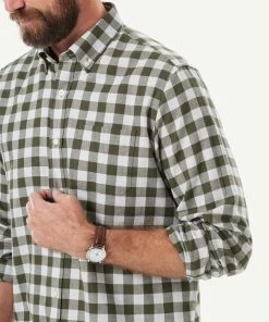 Brushed Twill Melange Check Long Sleeve Shirt – Olive