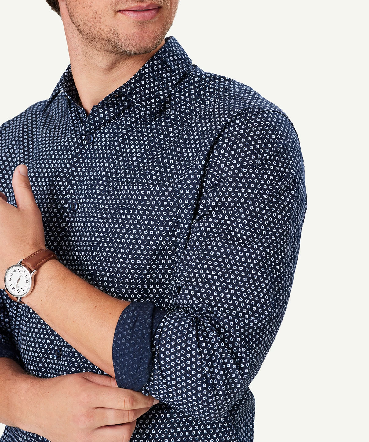 Add some print to your wardrobe with this navy men’s soft wash floral print shirt. Constructed from comfortable cotton and cut in a regular fit this shirt will keep you looking stylish and feeling comfortable all season long. Pair yours with neutral bottoms for breezy style or layer it up with a  sports jacket for a smart casual look.