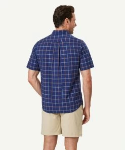 Elevate your everyday look with our classic madras short sleeve. This easy to style navy check is constructed from a soft washed cotton that is comfortable and easy to style. Pair yours with a tan chino for simple smart casual style.