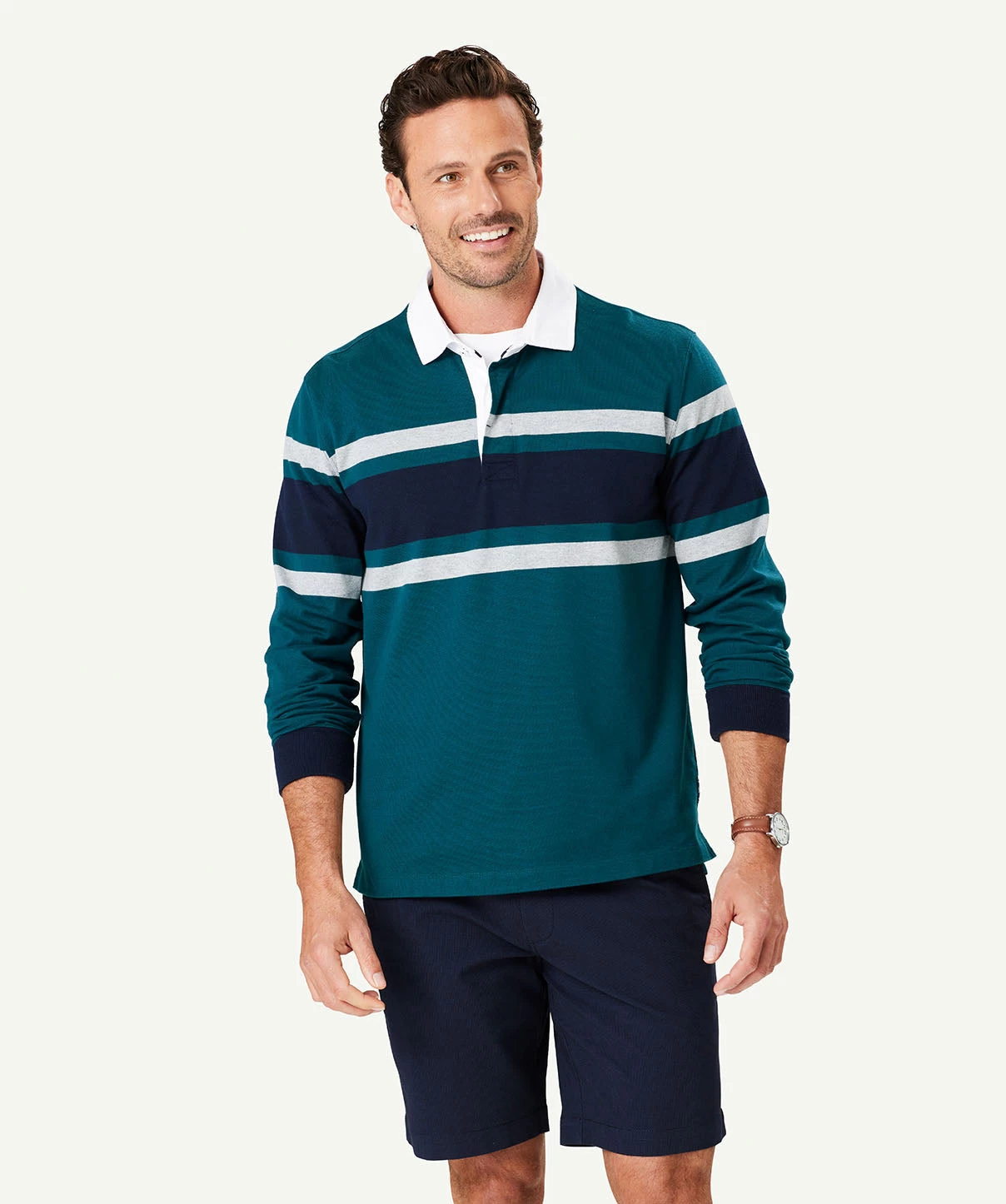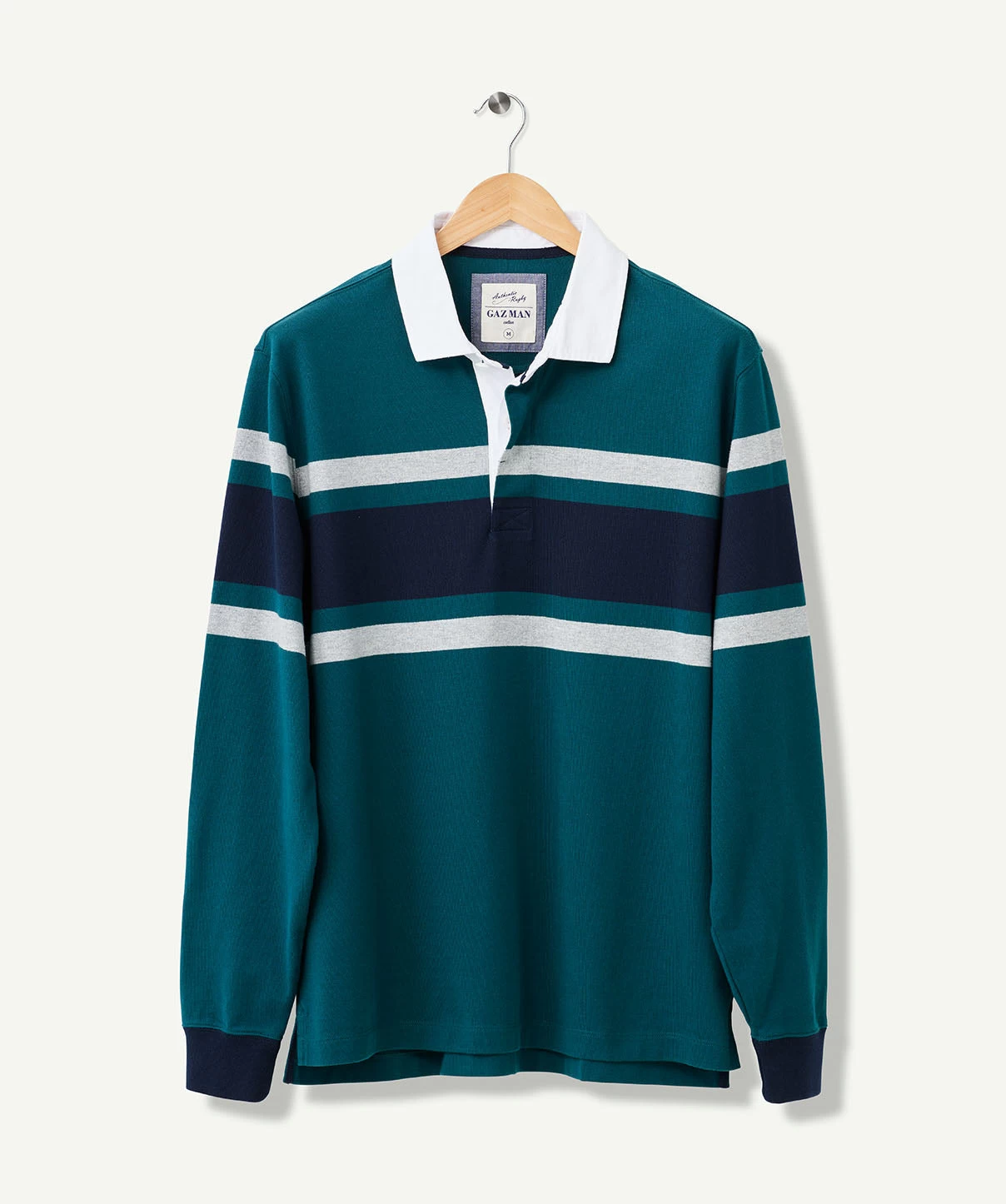 A staple of the GAZMAN range for years, the Chest Stripe Rugby Jumper provides clean, casual style with its ribbed cuffs and two button placket. A classic rugby weighted jersey constructed from soft cotton that is heavy enough to keep you warm ,yet, light enough to wear all year round. Complete the look with a GAZMAN puffer vest layered over the top for added warmth and casual style.