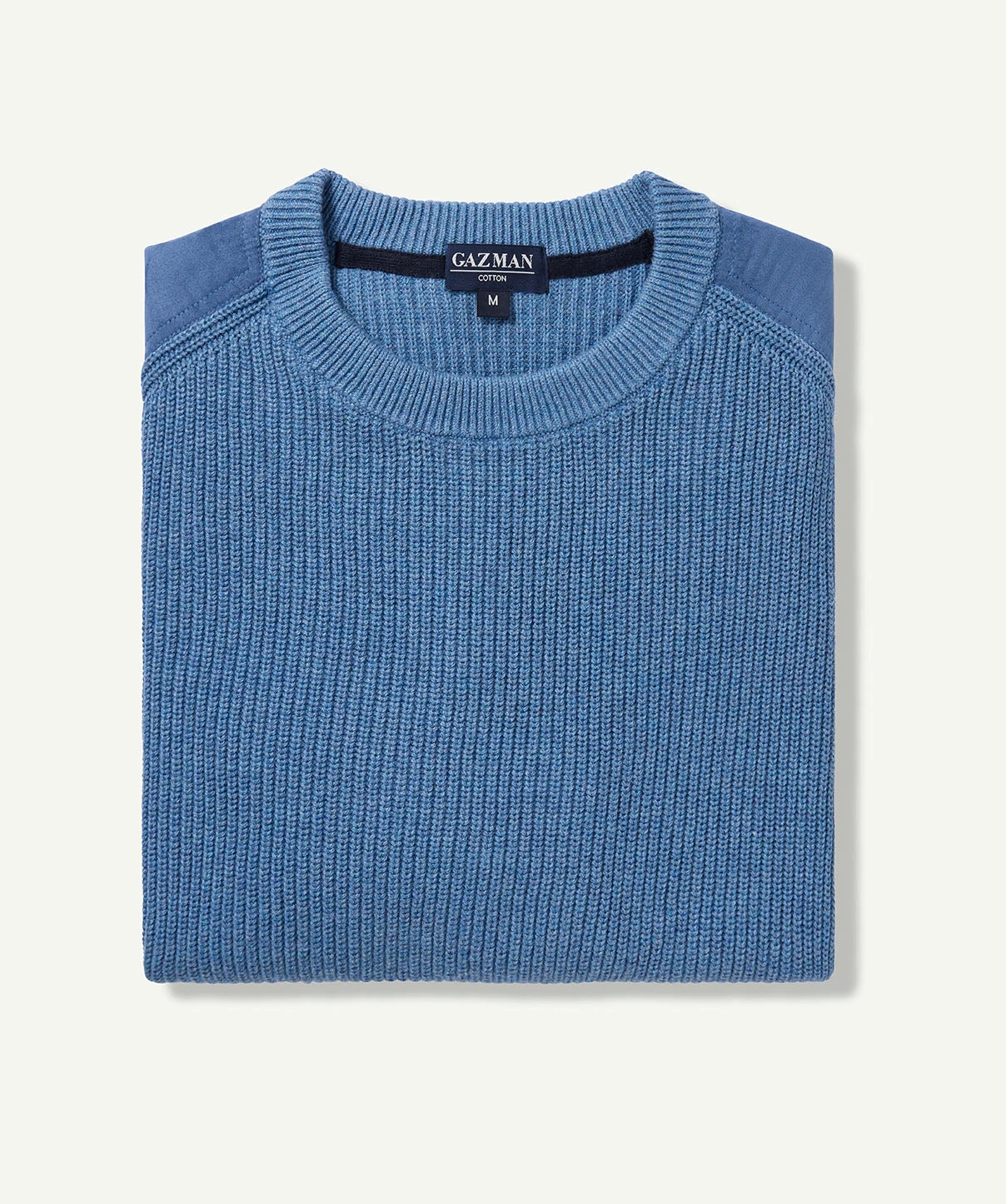 A GAZMAN winter favourite, the Chunky Fishermans Crew is a must have layer for cool weather. The ribbed heavy weight cotton knit features mock suede shoulder trims and crew neck styling. Wear it with a collared shirt or a basic tee for weekend comfort and style. Available in 5 colours.