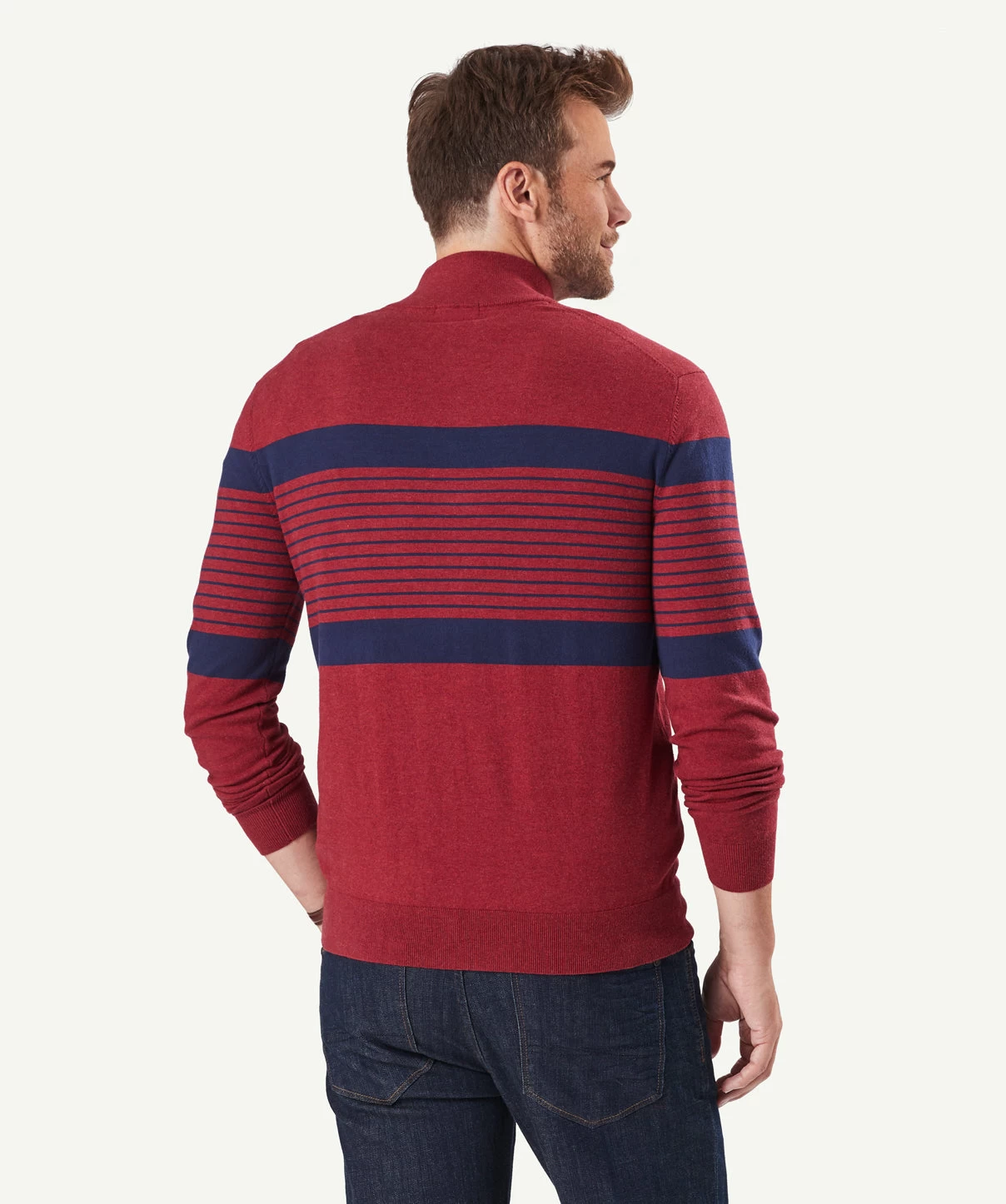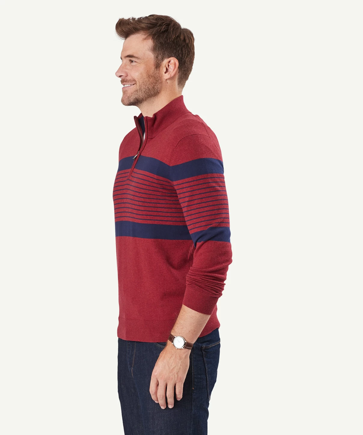 Our cotton stretch half zip is known for its comfort and durability. A mid-weight knit jumper with half zip styling, this practical men’s knit features a contrast collar. Wear yours over a shirt or t-shirt and pair together with your favourite chinos. Available in 7 colours.