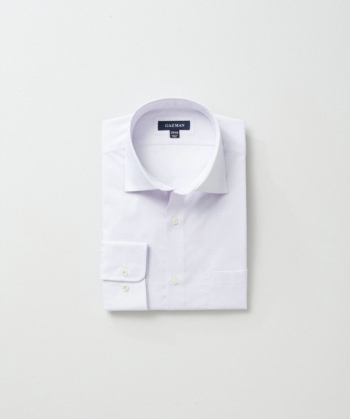 A modern hue for a modern man, this lilac print shirt looks smart paired together with navy business pants and tan leather accessories. Featuring a small print on a crisp white background this easy care shirt is subtle style.