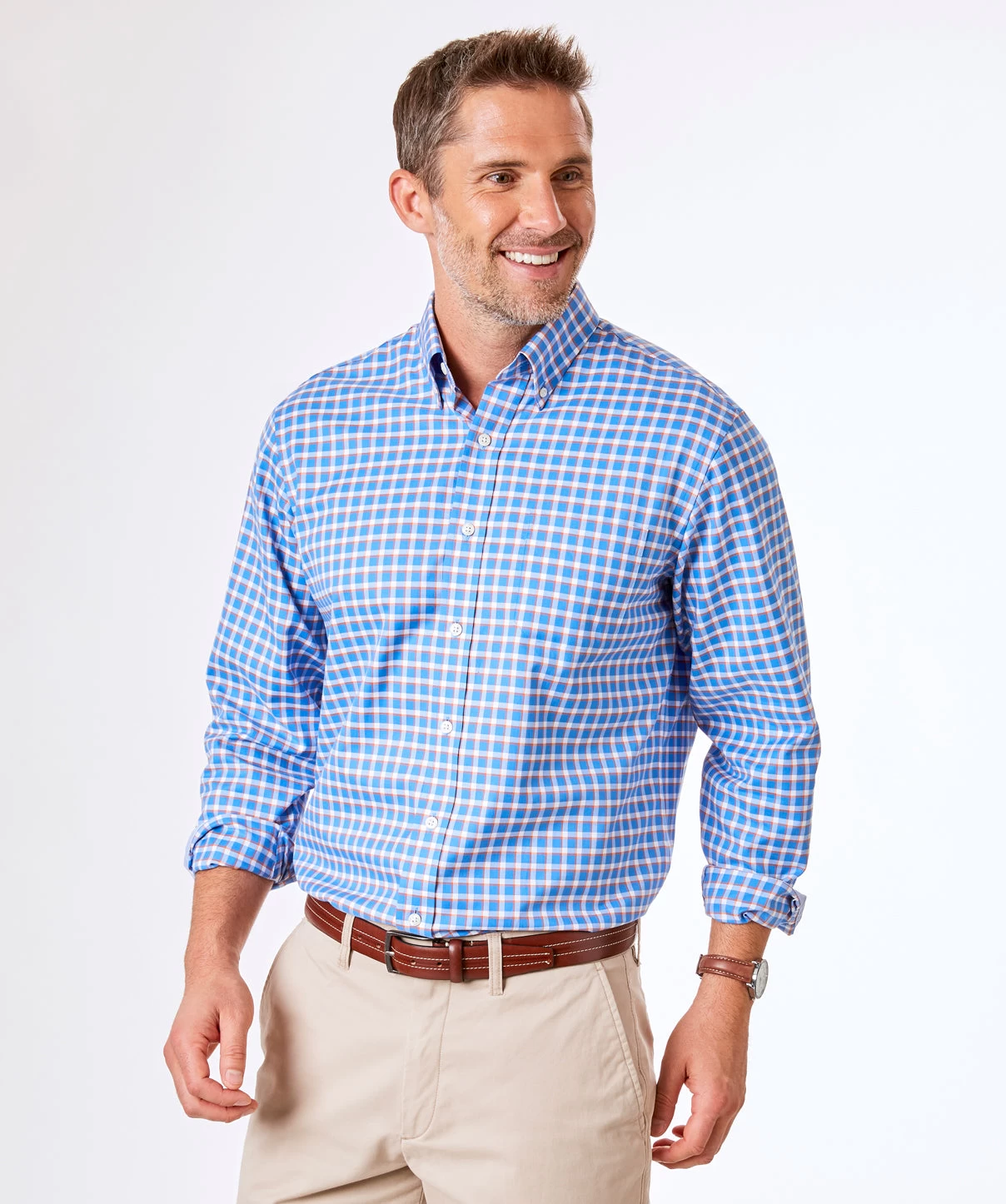 Our Regular fit shirts are designed with comfort and wearability in mind. A fuller cut, our Regular fit shirts provide room through the chest, arms and waist.