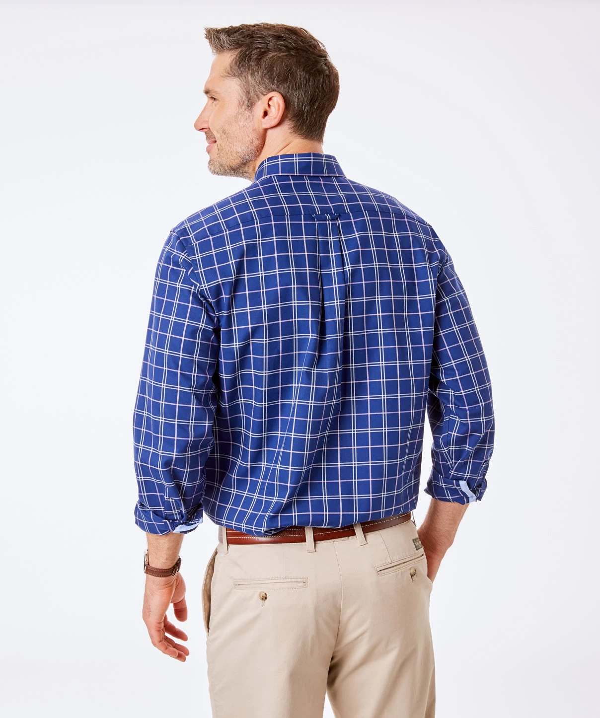 The beauty of an easy care shirt is that you never have to spend too much time preparing. Easy to iron, this royal blue check shirt will have you out the door in a flash and looking crease free for longer throughout the day.
