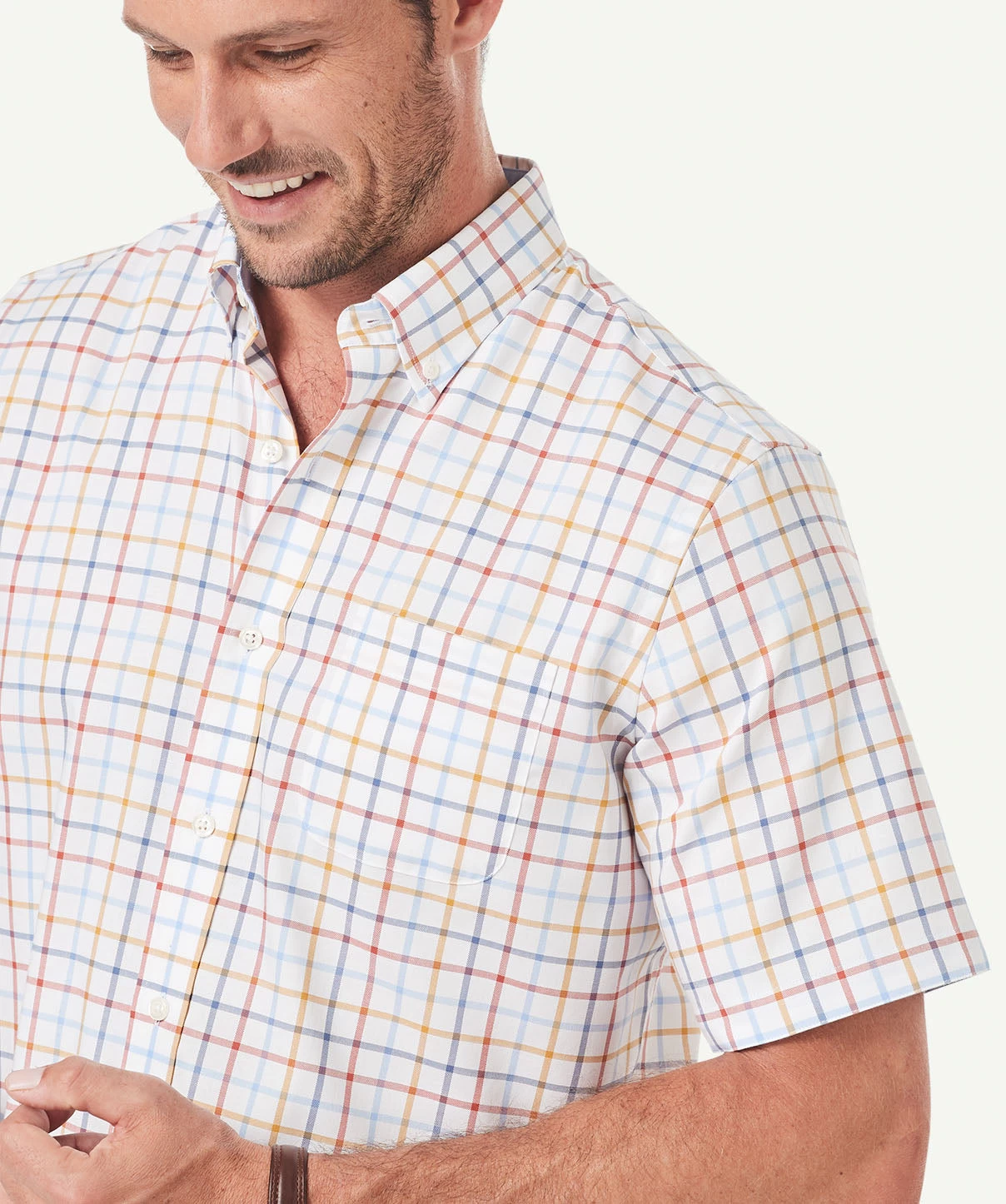 Designed with comfort and wearability in mind, The Oxford Check Shirt is a wardrobe essential. As part of our Easy Care range, The Easy Care Oxford Check Shirt is soft touch and a breeze to maintain due to it being less prone to wrinkling. Made from Cotton, this short sleeve shirt is best matched with a plain pair of Shorts or Chino pants.