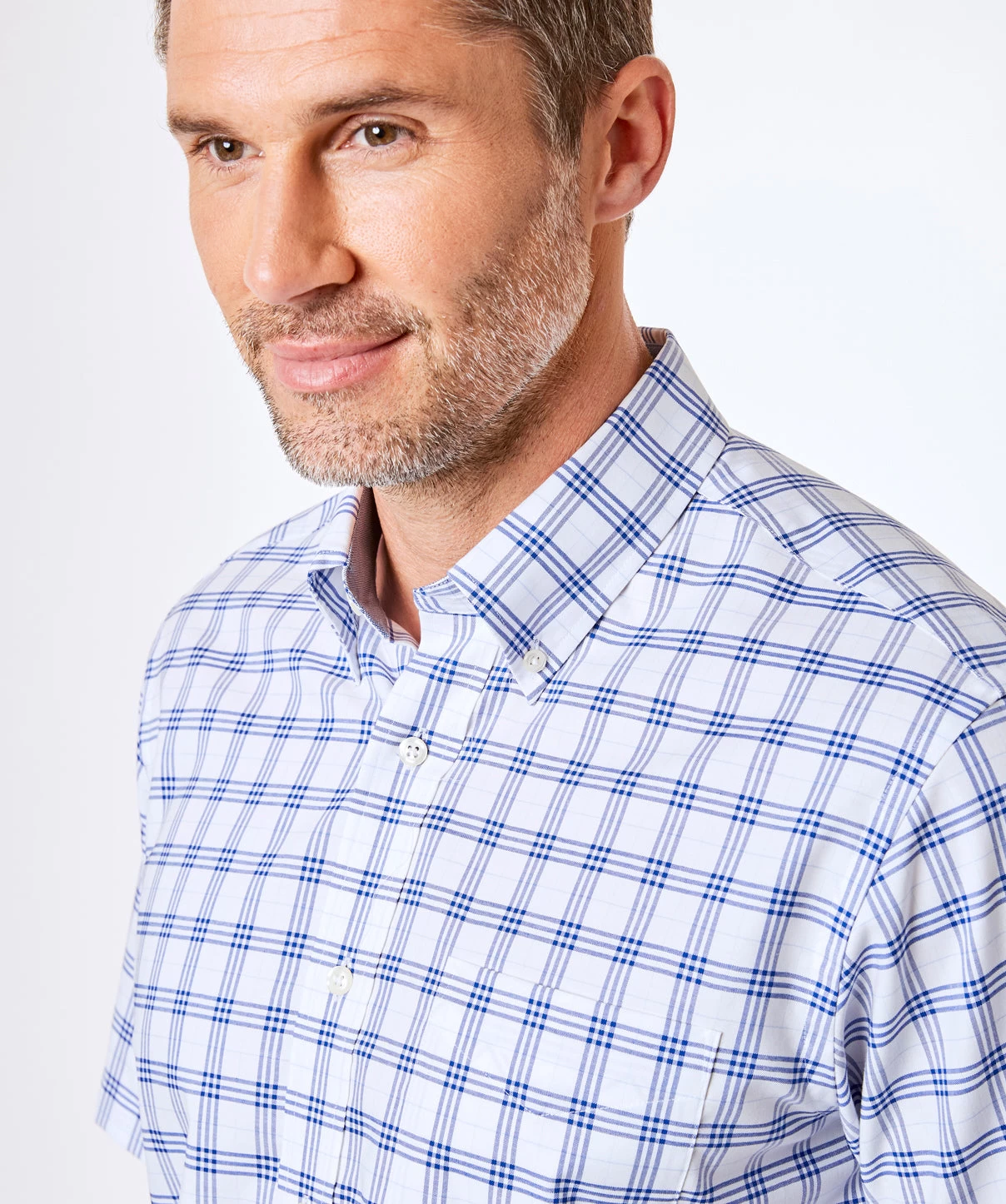 There’s always room in your wardrobe for a classic white and navy check shirt and we think this pure cotton shirt should be front and centre for warm weather. Finished with easy care technology this short sleeve shirt is fast to iron and stays looking crease free for longer.
