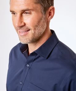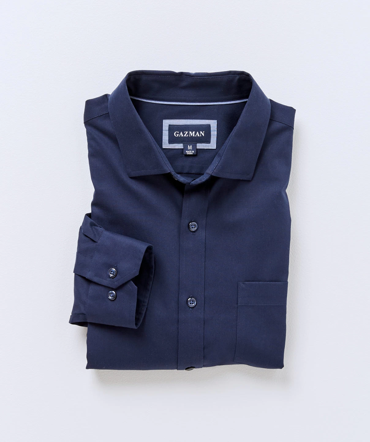 The foundation of a classic outfit, a plain twill shirt is a blank canvas for your personal style. Dress this men’s shirt up with a tie and jacket, or keep things casual with the sleeves rolled up and a pair of chinos. Available in White and Navy, this wardrobe essential features a chest pocket and a spread collar for classic styling.
