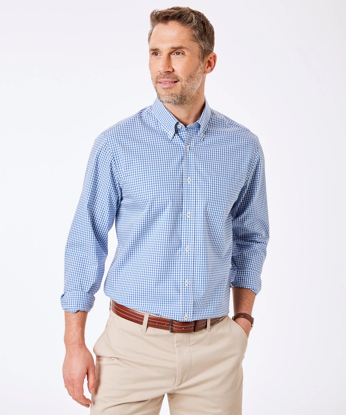 Our men’s easy care stretch gingham is the ‘effortless cool’ shirt. When you want to look good in any setting, but not like you’re trying too hard. Available in 5 colours.