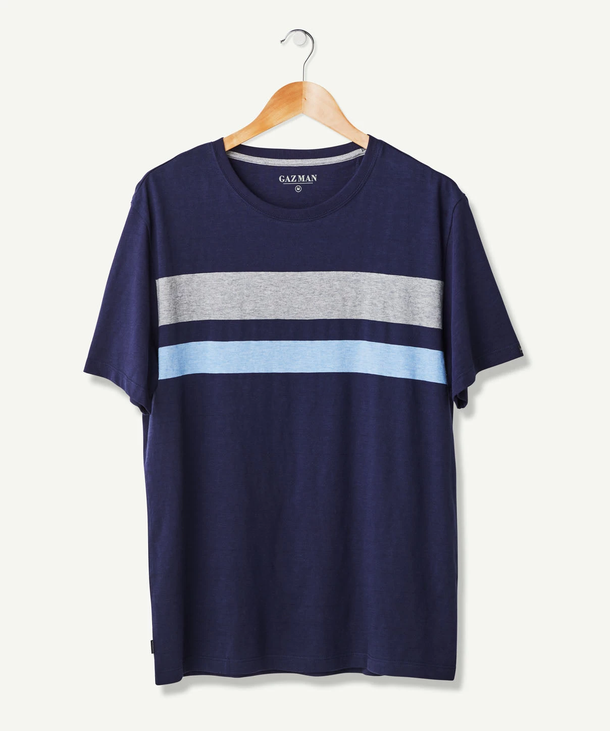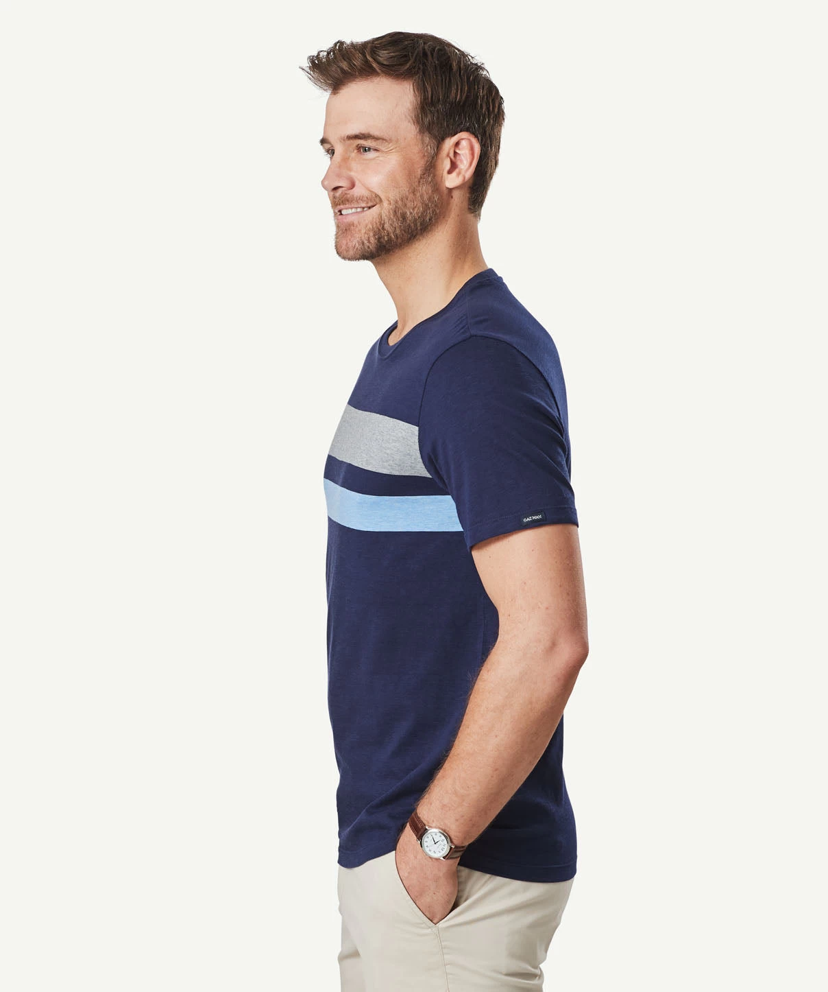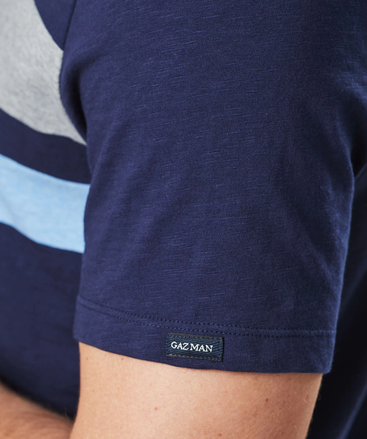 A great choice for casual summer style, our engineered stripe tee is very soft and designed to be comfortable for long days outdoors. Made from cotton slub jersey and cut in a comfortable fit, this t-shirt looks smart with white shorts. Â