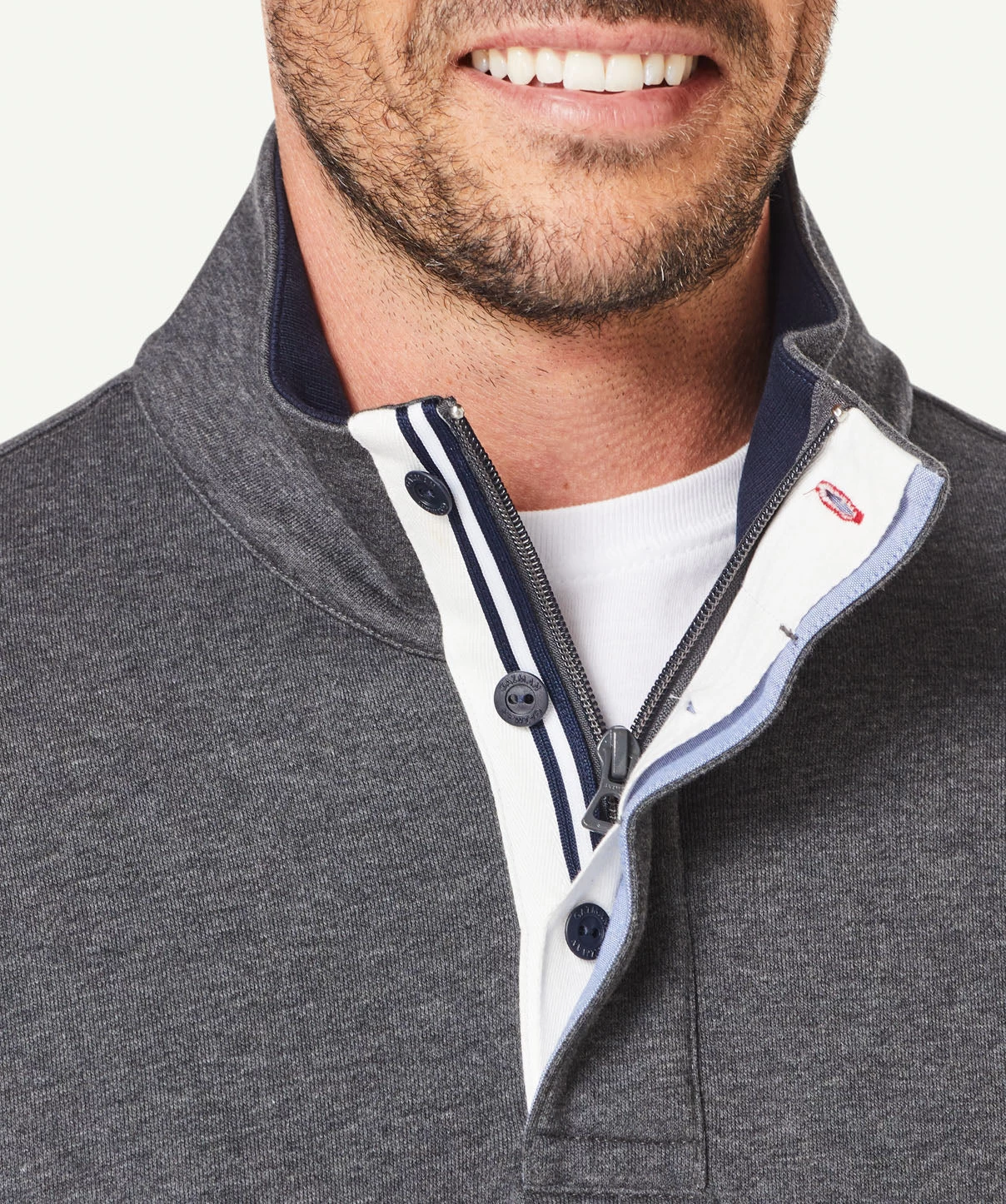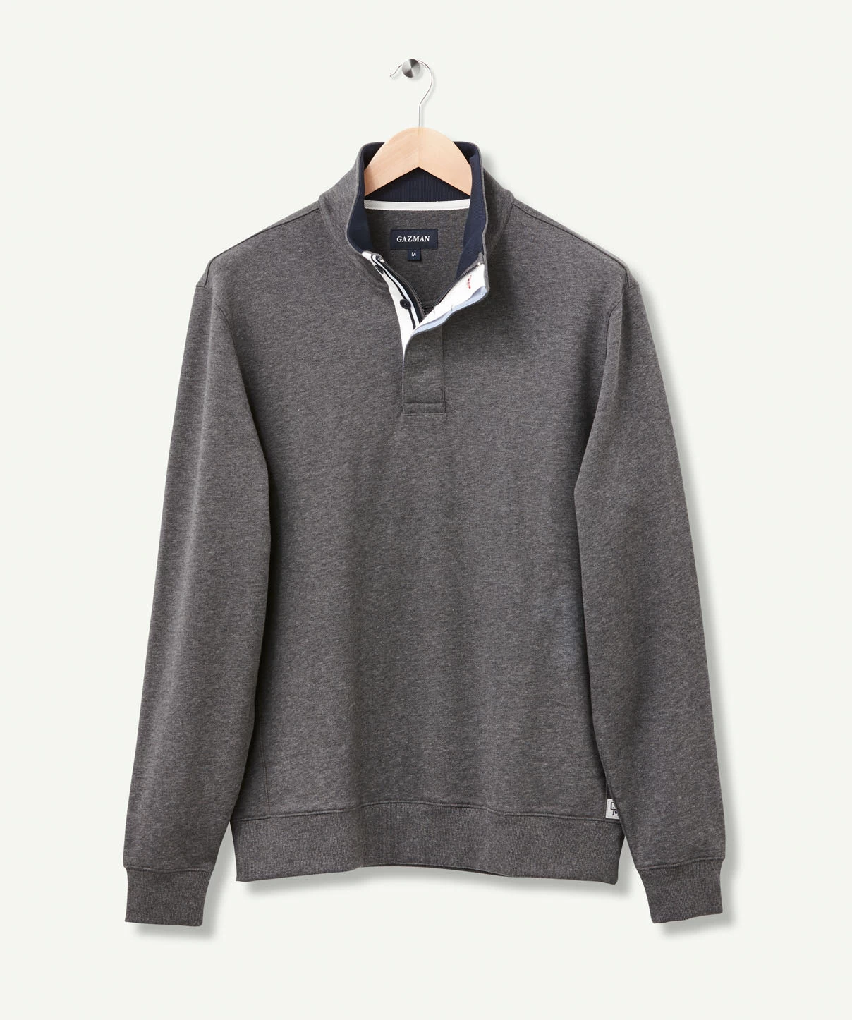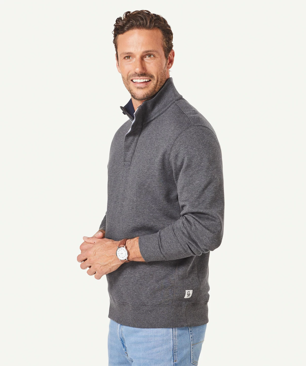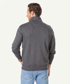 Our half zip fleece sweat is constructed from soft cotton making it one of our most comfortable knits. The classic knit features a front button opening, ribbed cuffs and  half zip styling. This practical knit can be worn on your morning walks or layered with a shirt as a more casual outfitting option to a knitwear garment.