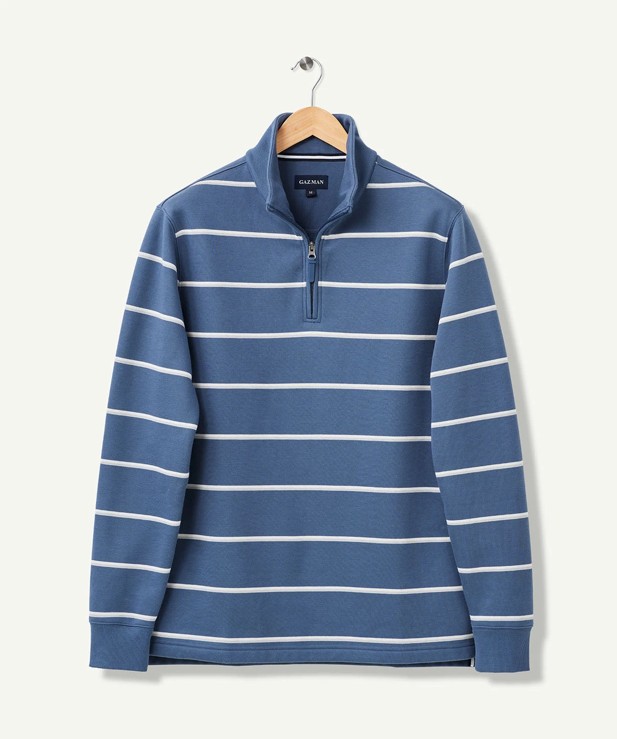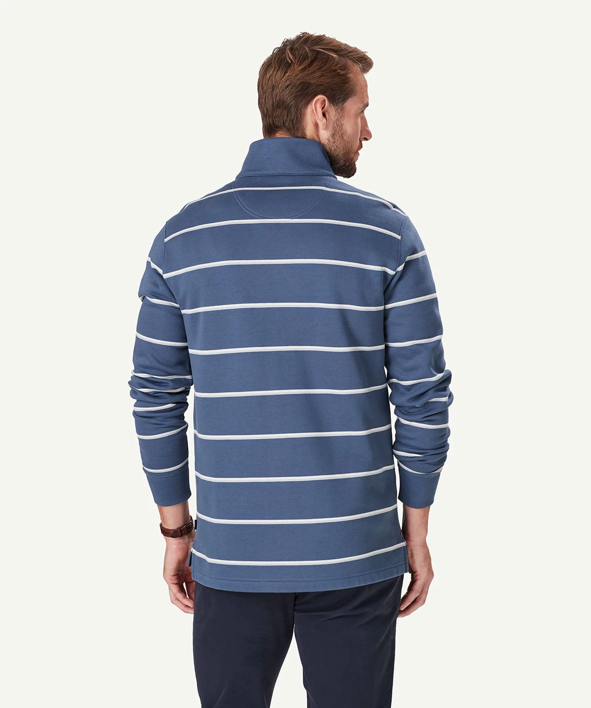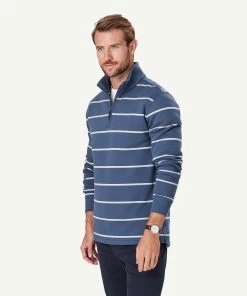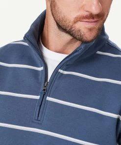 Our Half Zip Fleece Sweat is constructed from soft cotton blend giving it a soft hand feel and making it one of our most comfortable sweats. The classic yarn dyed stripe sweat features half zip styling and ribbed cuffs. A practical men’s sweat that can be worn on your morning walks or layered with a shirt as a more casual outfitting option to a knitwear garment.