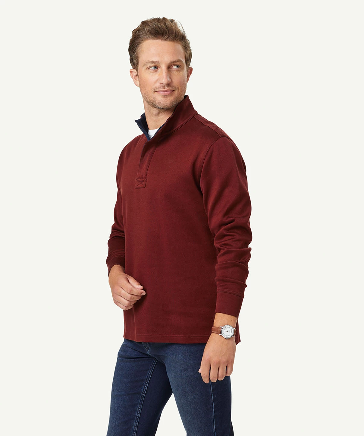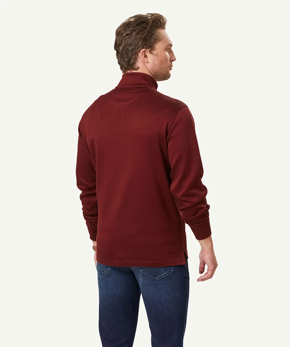 Our Half Zip Sweat is constructed from soft cotton making it one of our most comfortable men’s sweat. The classic sweat features ribbed cuffs and half zip styling. A practical jumper that can be worn on your morning walks or layered with a shirt as a more casual outfitting option to a knitwear garment.Â