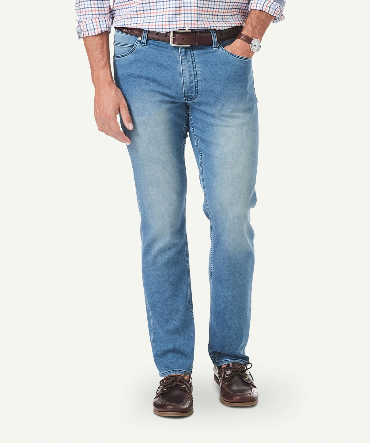 Modern Fit Jeans are our slimmest cut. Slim through the seat and thigh and tapered to the hem.