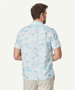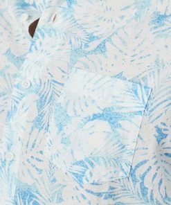 Linen Blend Fern Print Short Sleeve Shirt – Sky Blue