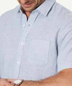 A nod to nautical, this blue and white striped linen shirt is ideal for the beachside man. Made from a breathable linen and cotton blend, this regular fit shirt can be layered with a sports jacket, or worn alone with shorts for a smart casual summer look.
