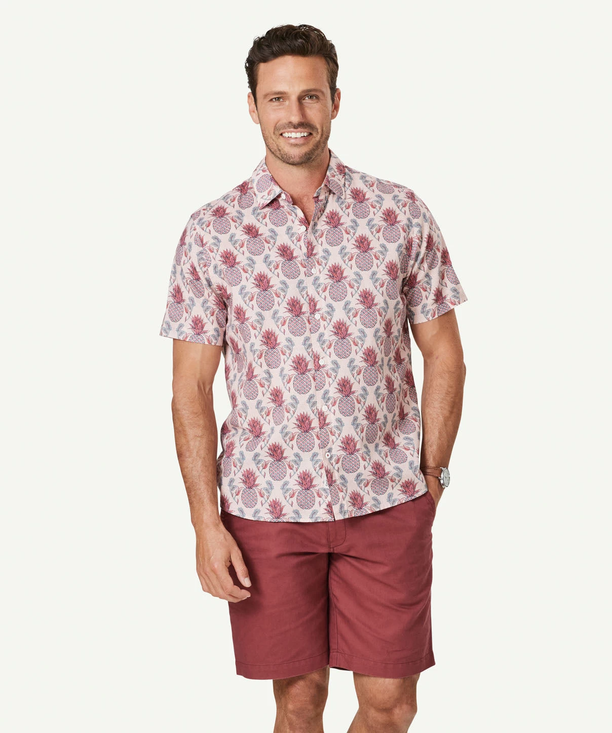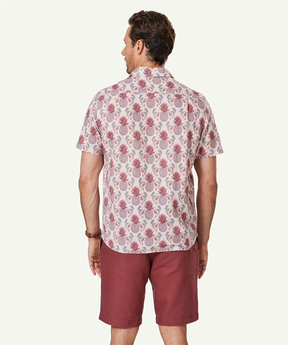 Designed with breathability and comfort in mind, our Linen Blend Pineapple Print shirt will be a summer staple. The linen blend shirt features a stylish pattern and has a soft hand feel making it comfortable and wearable all day long.