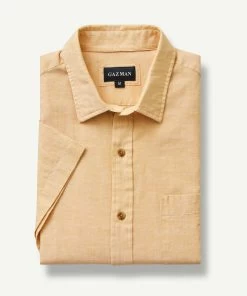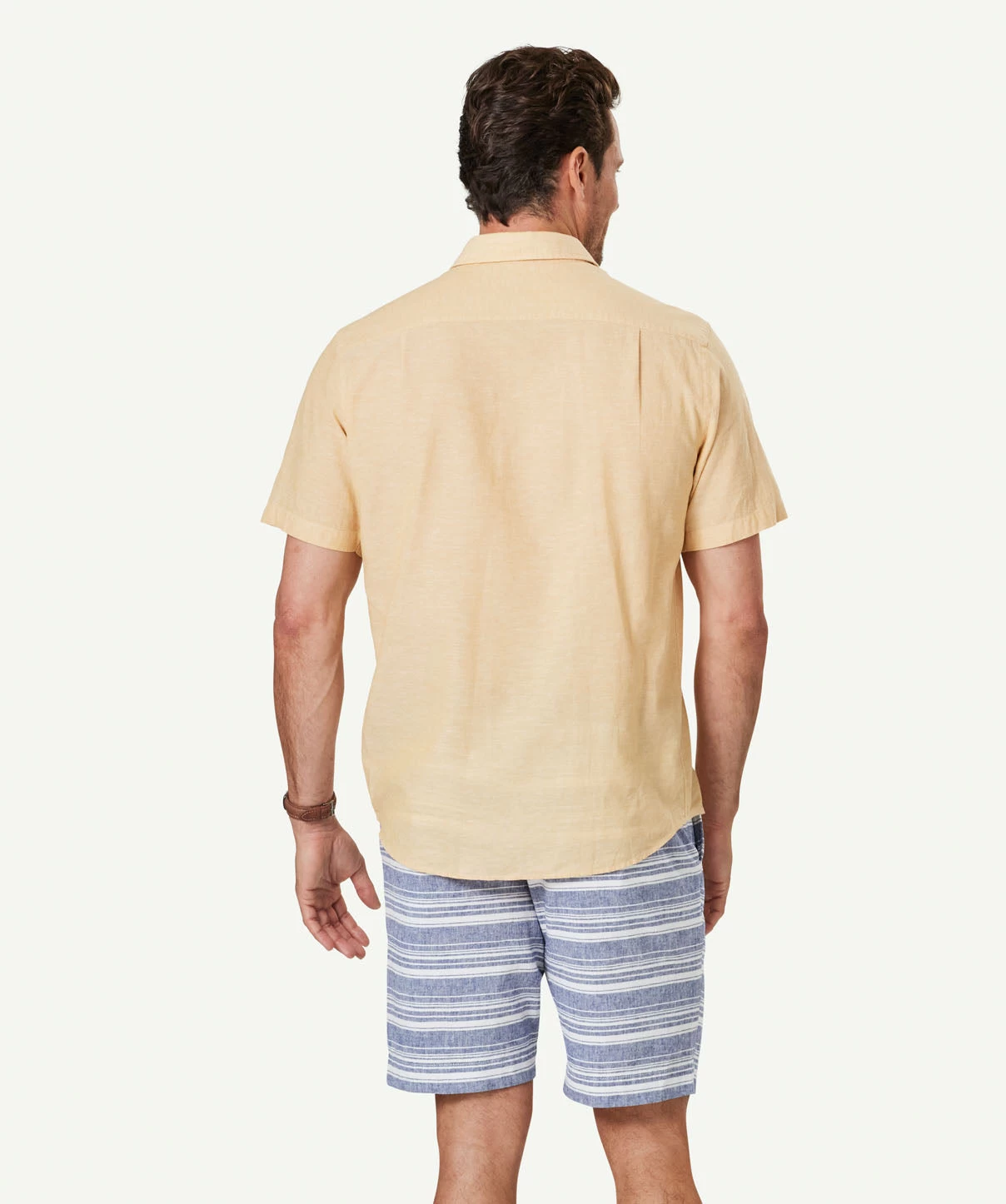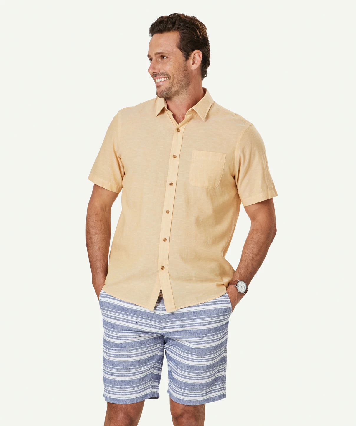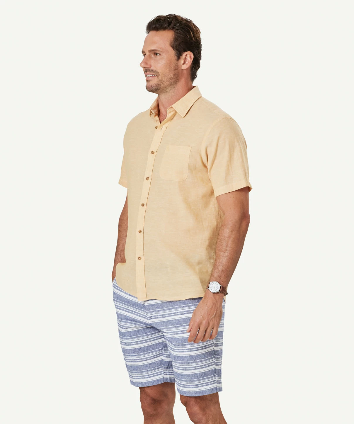 Linen Blend Plain Short Sleeve Shirt – Amber Yellow