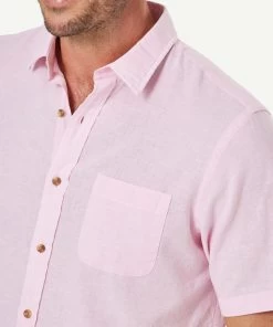 Linen Blend Plain Short Sleeve Shirt – Light Pink