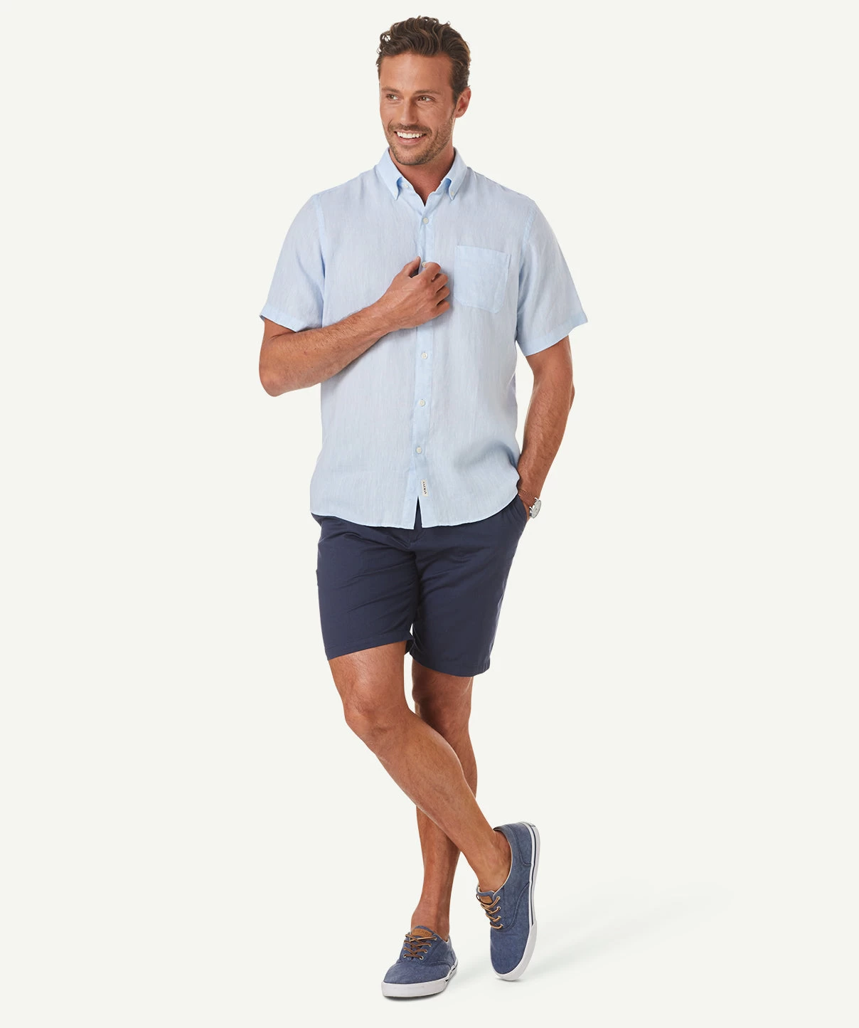 A fresh, crisp addition to your summer wardrobe, our short sleeve linen shirt is designed for comfort. Made from soft washed linen and cut in a regular fit, with a button down collar, this men’s linen shirt is available in four colours for the summer season.