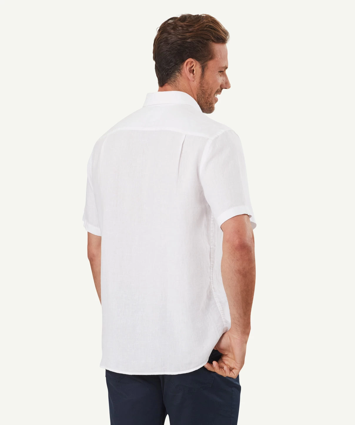 A fresh, crisp addition to your summer wardrobe, our short sleeve linen shirt is designed for comfort. Made from soft washed linen and cut in a regular fit, with a button down collar, this men’s linen shirt is available in four colours for the summer season.