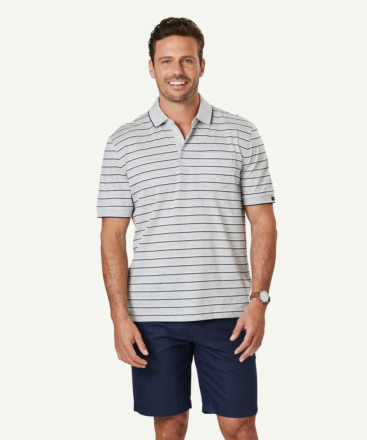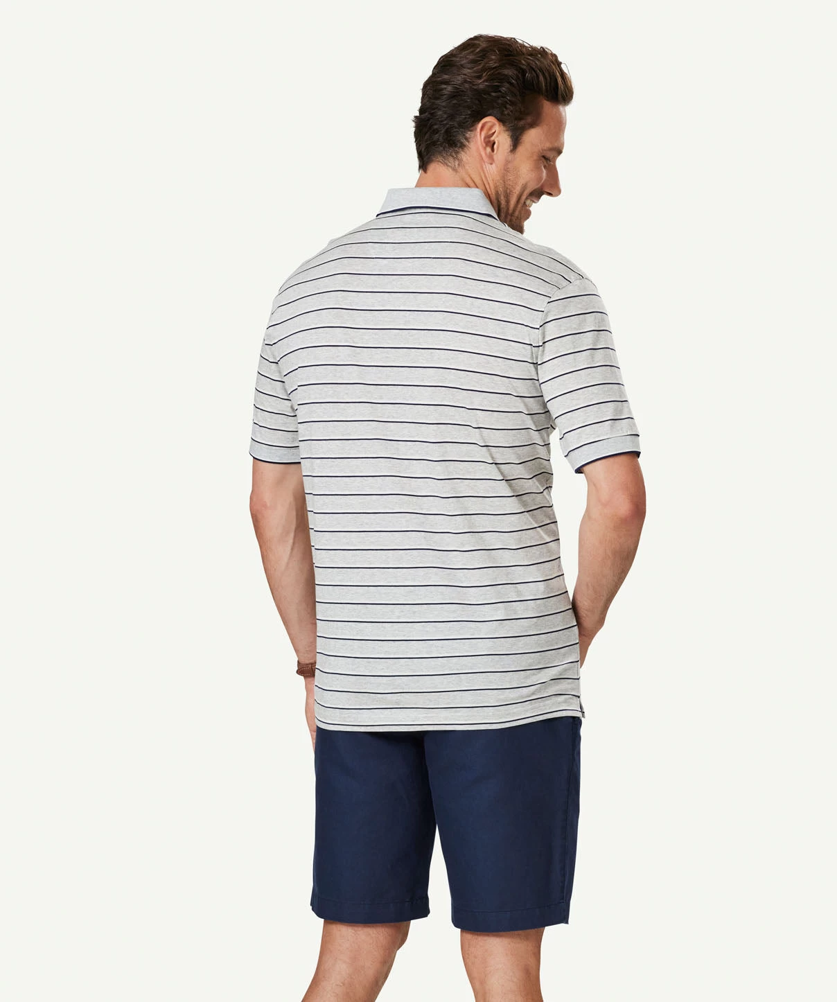 Silk-like to the touch, Smart Tri-Stripe Polo is woven with cotton with a mercerised finish for ultimate comfort and style. The subtle stripe pairs well with light chinos or shorts for effortless style.