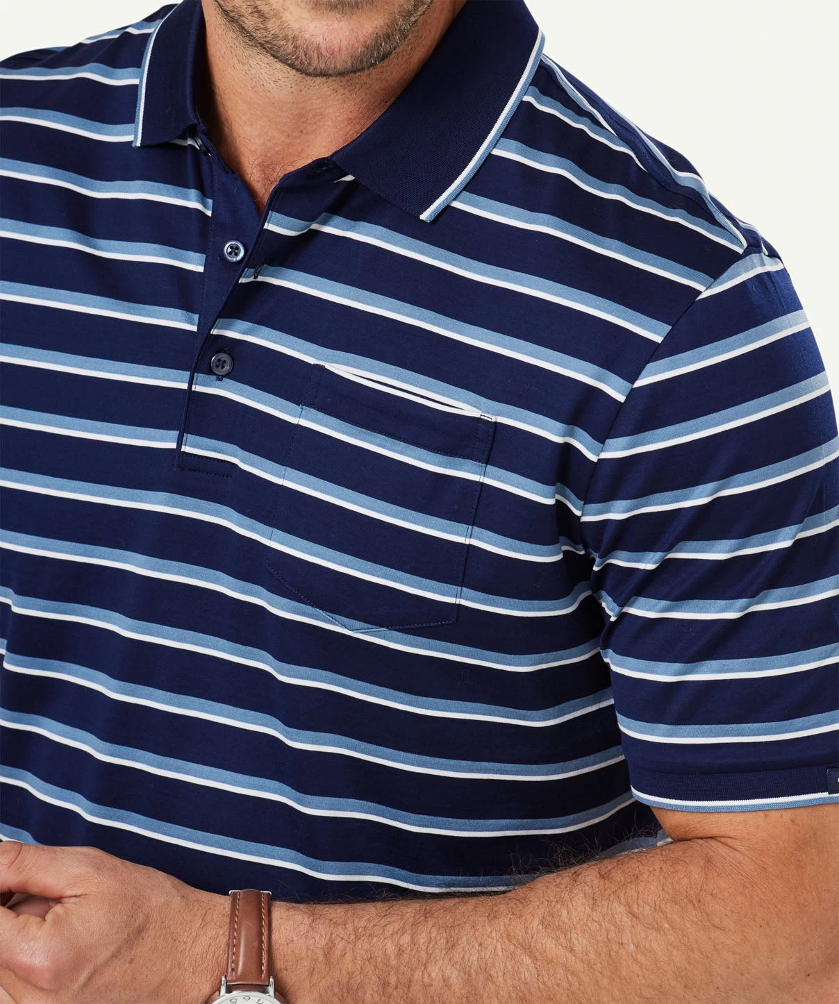 Silk-like to the touch, Smart Tri-Stripe Polo is woven with cotton with a mercerised finish for ultimate comfort and style. The subtle stripe pairs well with light chinos or shorts for effortless style.