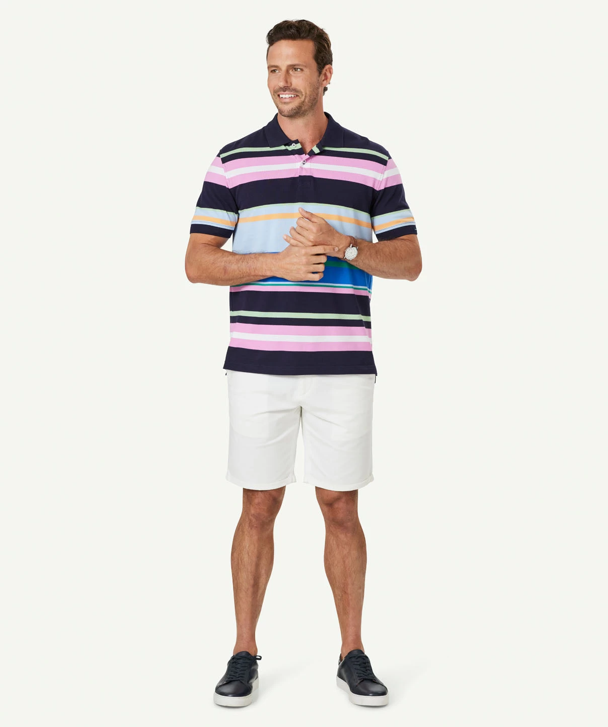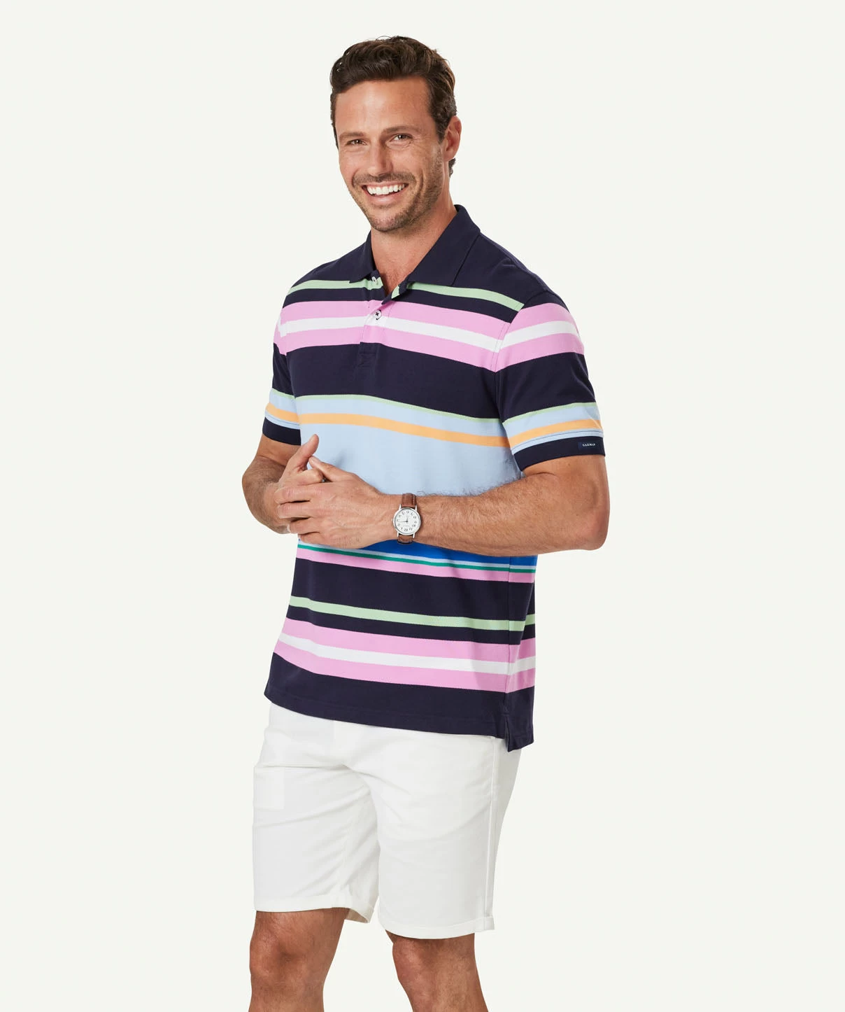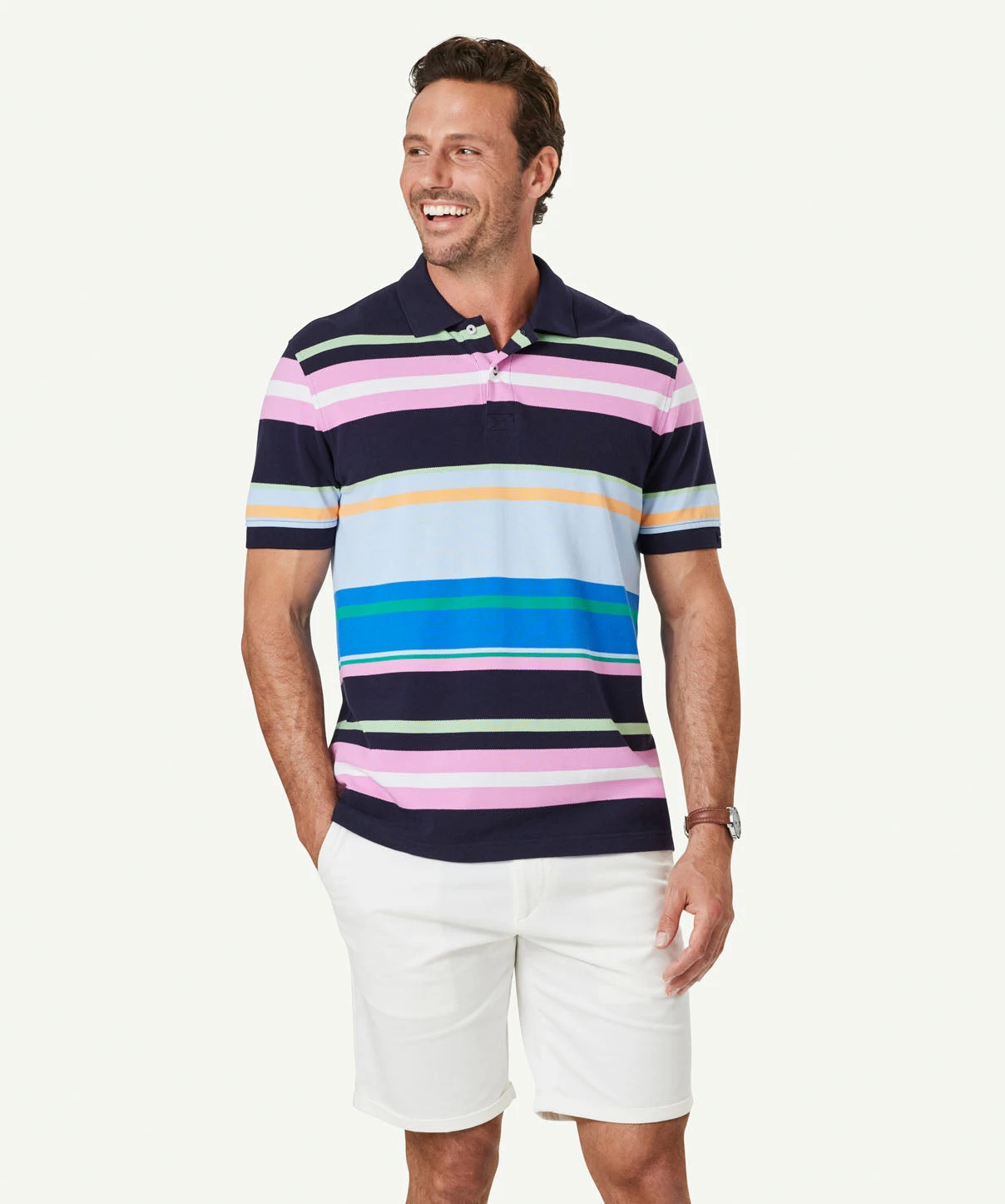 Our Multi Stripe Pique Polo is ideal for outdoor activities and occasions. Designed with comfort in mind, this polo is constructed from traditional pique knit cotton for function and breathability. Cut for comfort, this regular fit men’s polo looks smart paired together with chinos or shorts.