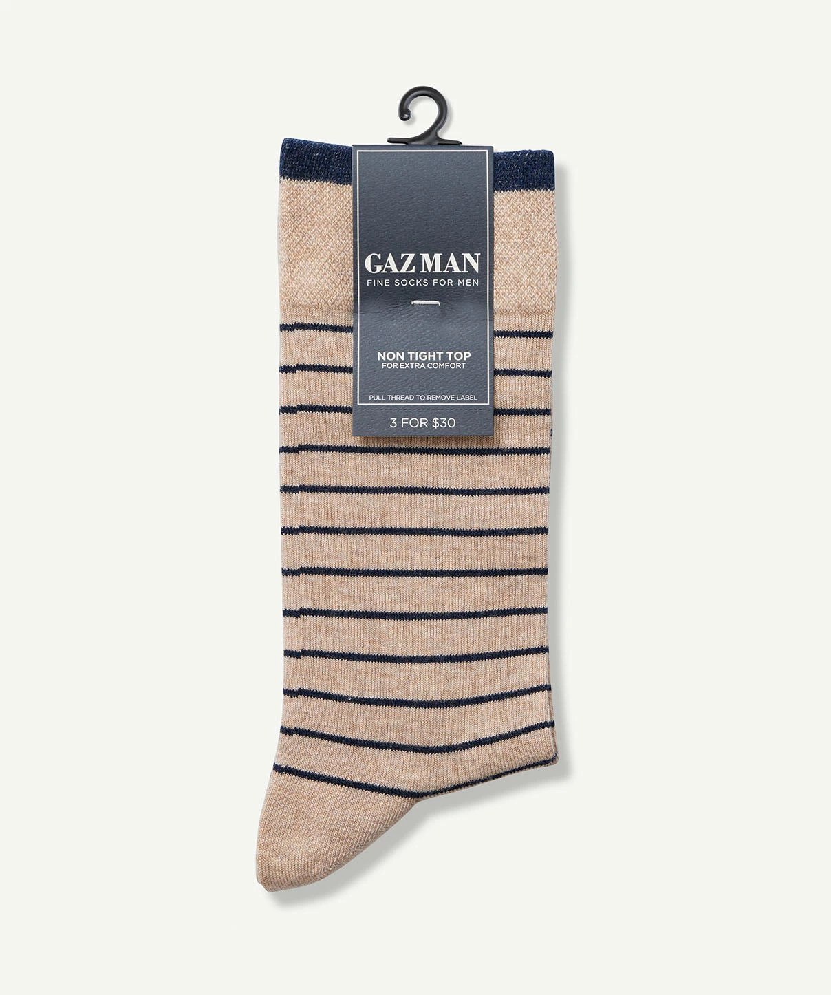 Add some stripes to your sock rotation with a pair of GAZMAN bamboo cotton Stripe socks. Featuring a subtle easy to wear design, these men’s cotton socks feature non tight cuffs and reinforced wear points for comfort and longevity.