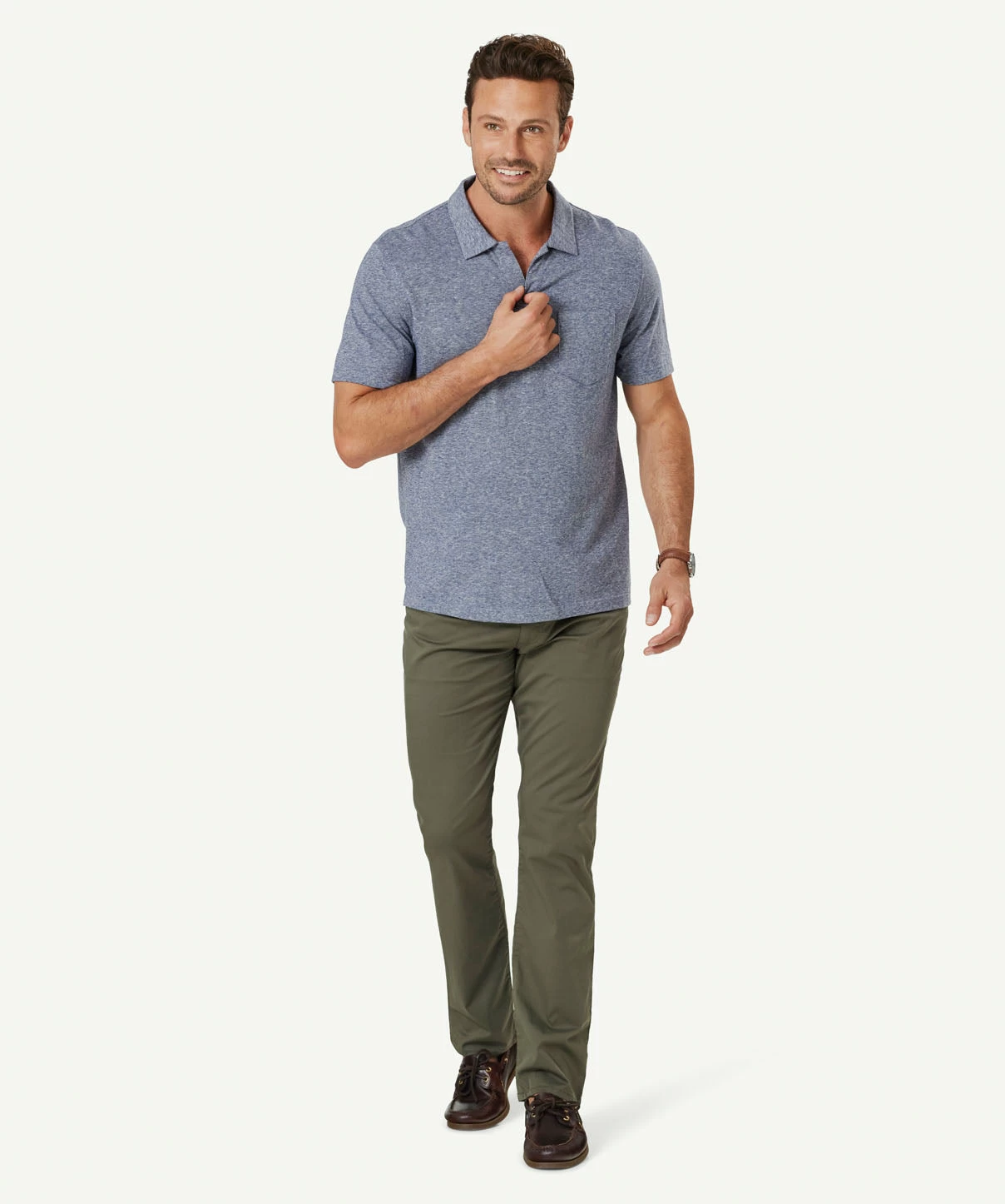 Our Resort Polo is made from a luxurious blend of cotton, linen and elastane, ensuring comfort, breathability and style. Designed with a relaxed cut and open collar, the resort polo is your new laid back weekend essential. Available in three easy to style colours.