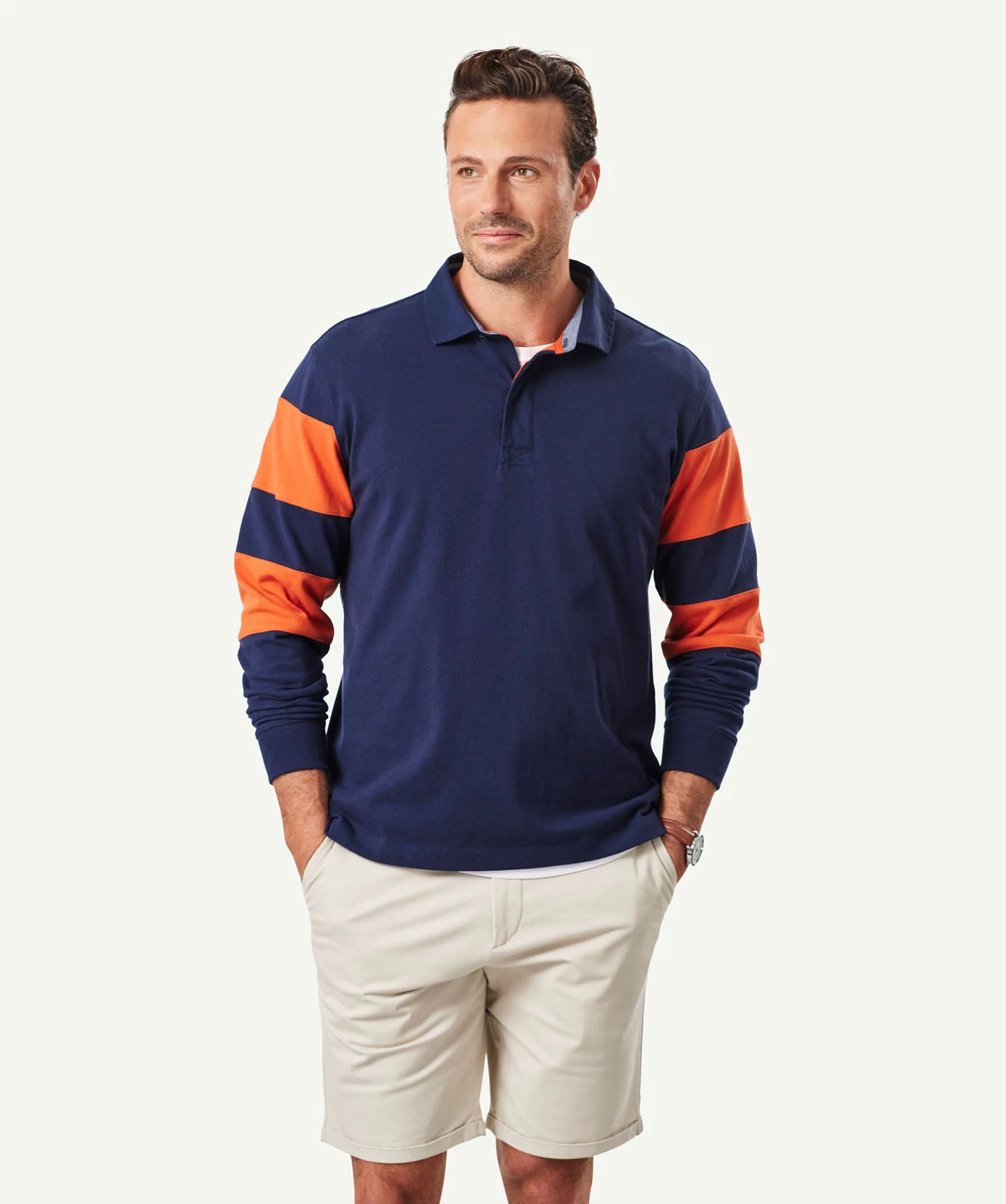Created for comfort, our Sleeve Stripe Rugby is the perfect laying piece that makes for a relaxed and polished look. Soft to touch and featuring a smart sleeve stripe and woven stripe collar, this rugby style is athletic and smart.