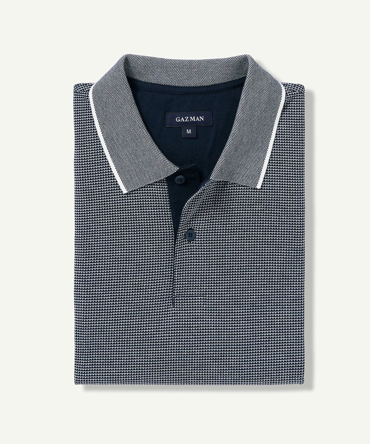 Be weekend ready with our Smart Jacquard Polo. Constructed from soft to touch Egyptian Cotton giving it a luxurious look and feel for quality comfort. Featuring a birdseye ribbed collar with contrast edges and two button placket, this men’s polo offers lightweight and breathable comfort that is equally functional as it stylish.    Â