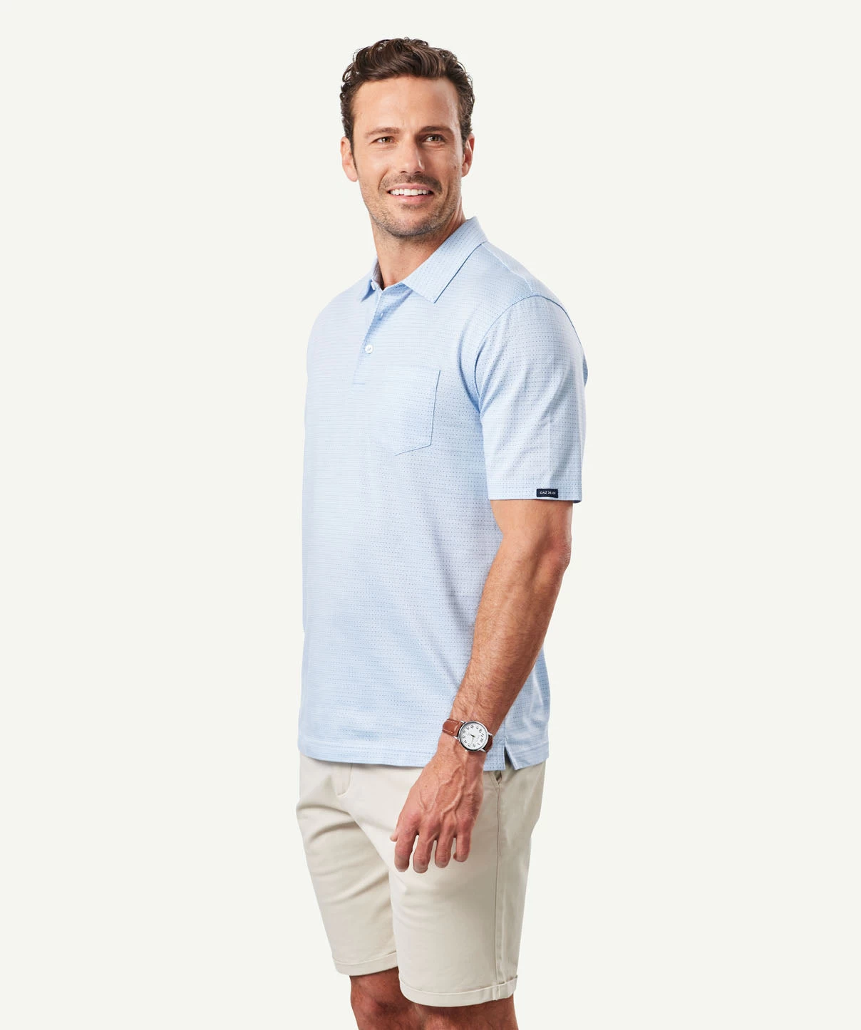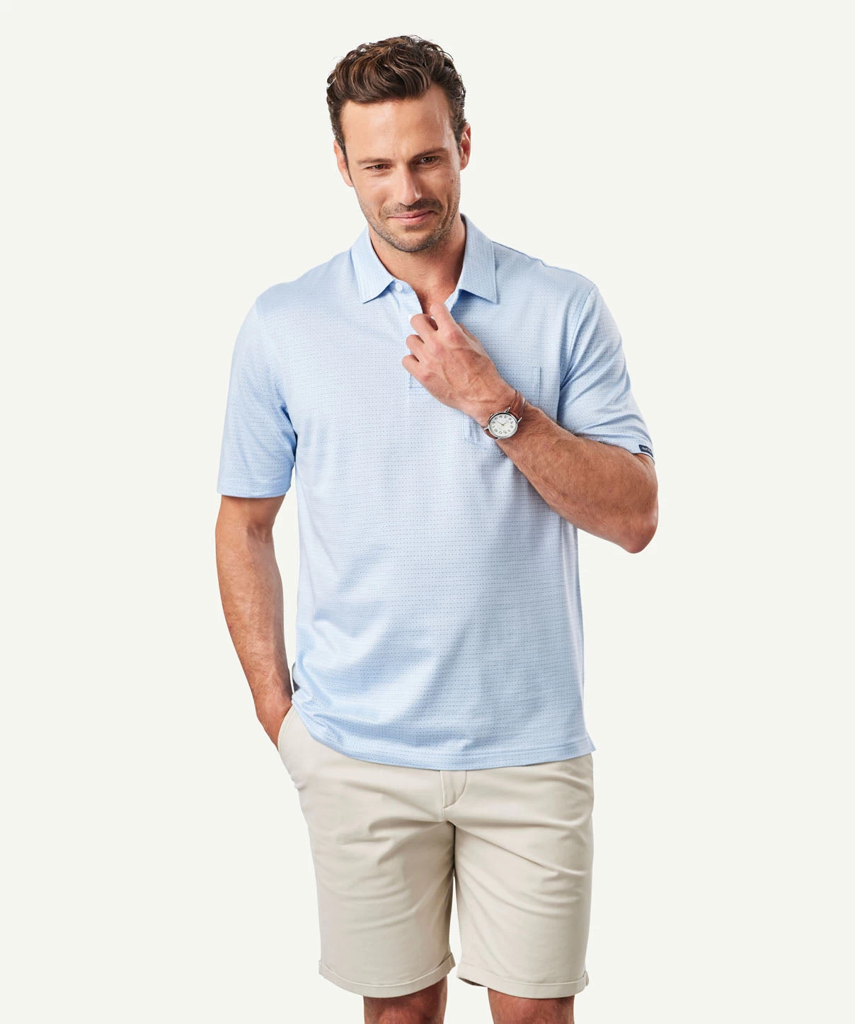 Easily add print into your wardrobe this season. Our Smart Jaquard Polo features a subtle grid print, and a silk like lustre that will keep you feeling cool and looking smart. Constructed with a smooth cotton thread that is silk-like to the touch and features a structured collar that’s adds a dash of sophistication to any outfit.