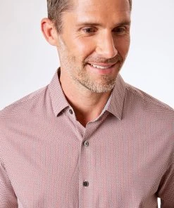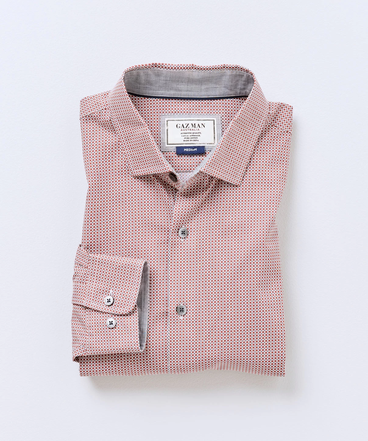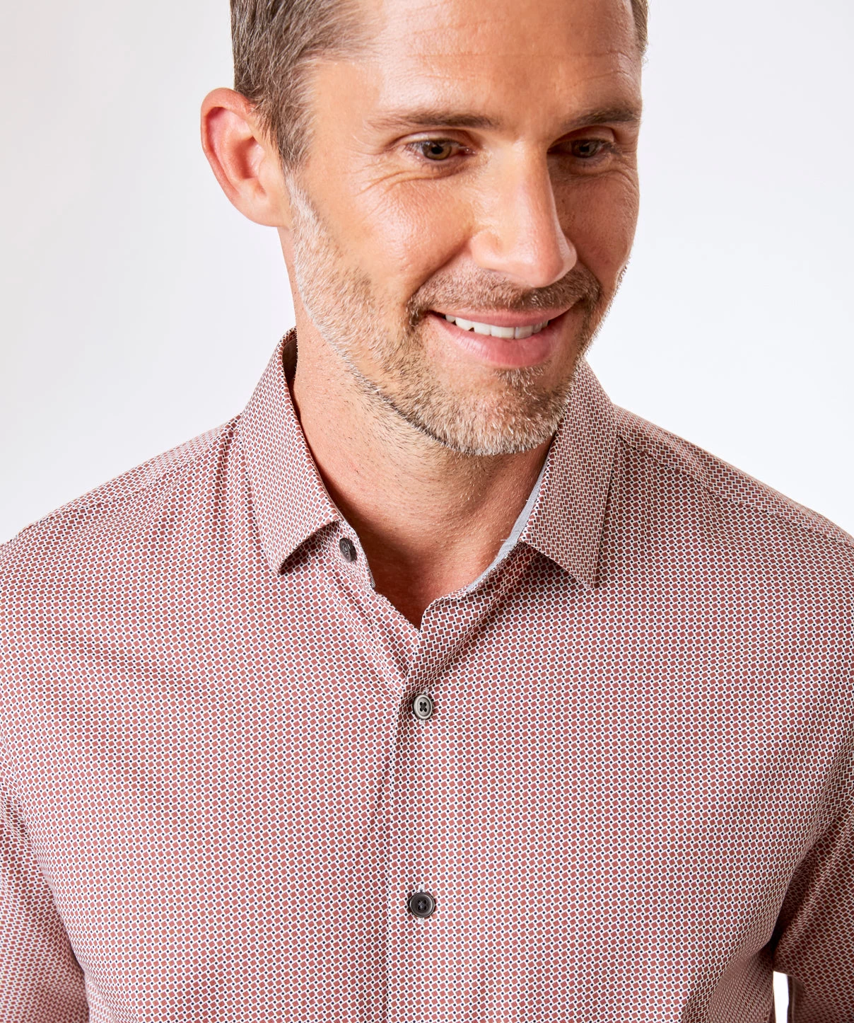 The easiest way to brighten up a grey day is with a dash of colour. Brick red is the colour of the season, and this patterned print shirt is an easy way to look stylish. Wear it together with chinos or a pair of jeans.