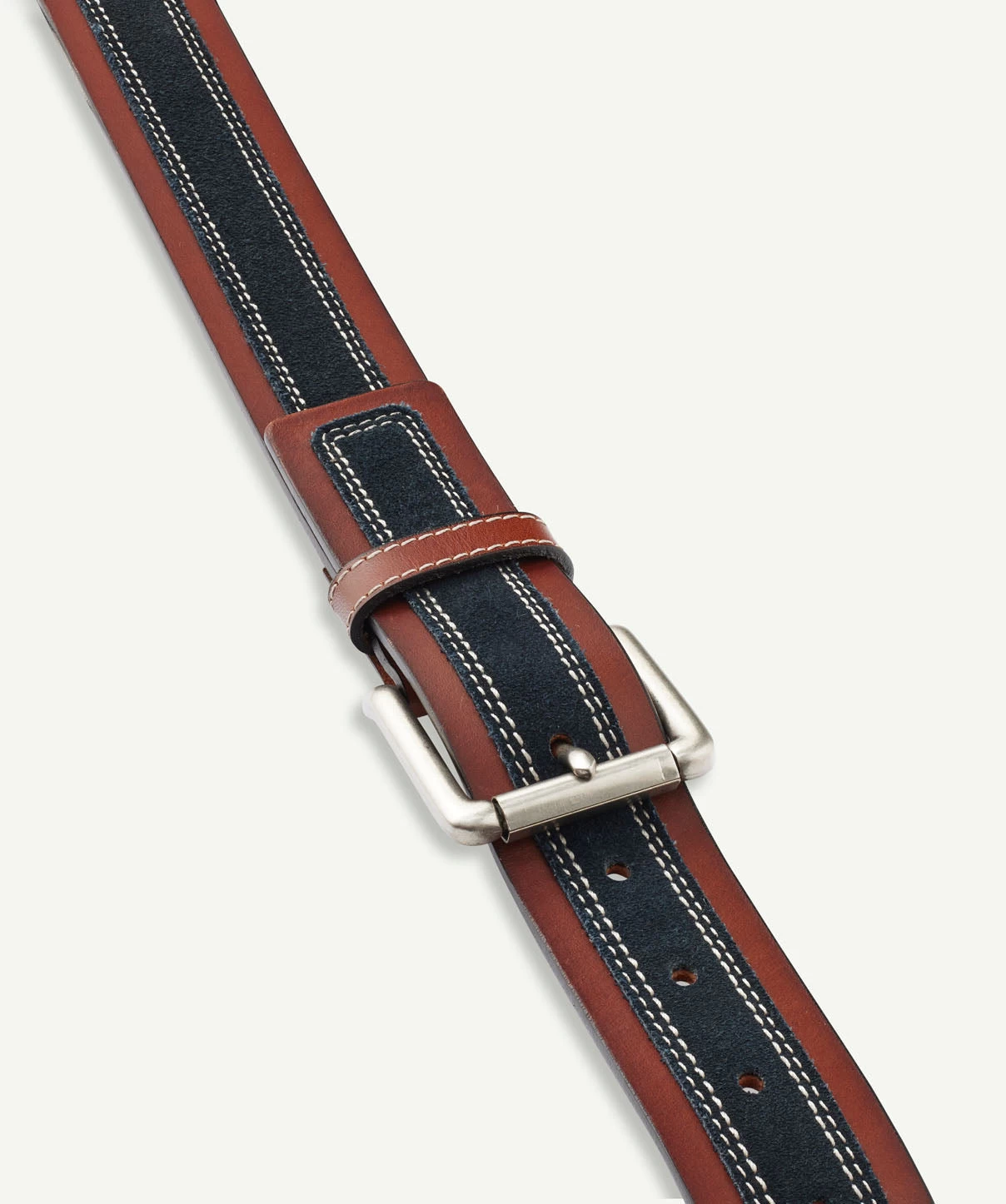 This leather belt makes for a timeless accessory. Designed from 100% leather and featuring burnished edges with a distressed-suede overlay and antiqued-nickel buckle. Complimenting any smart casual outfit when paired with chinos or jeans.