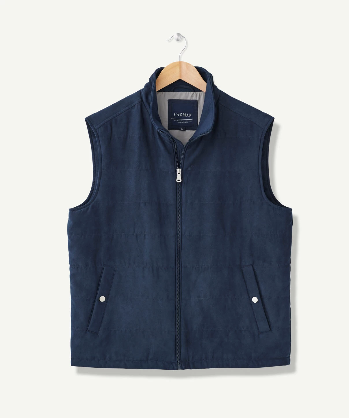 Super soft to touch, this vest is a perfect layer to add to your GAZMAN wardrobe. Featuring a zip front closure, internal and external pocket and quilted contrast lining this suede touch vest looks smart layered with a collared shirt, or your favourite tee for year round style.