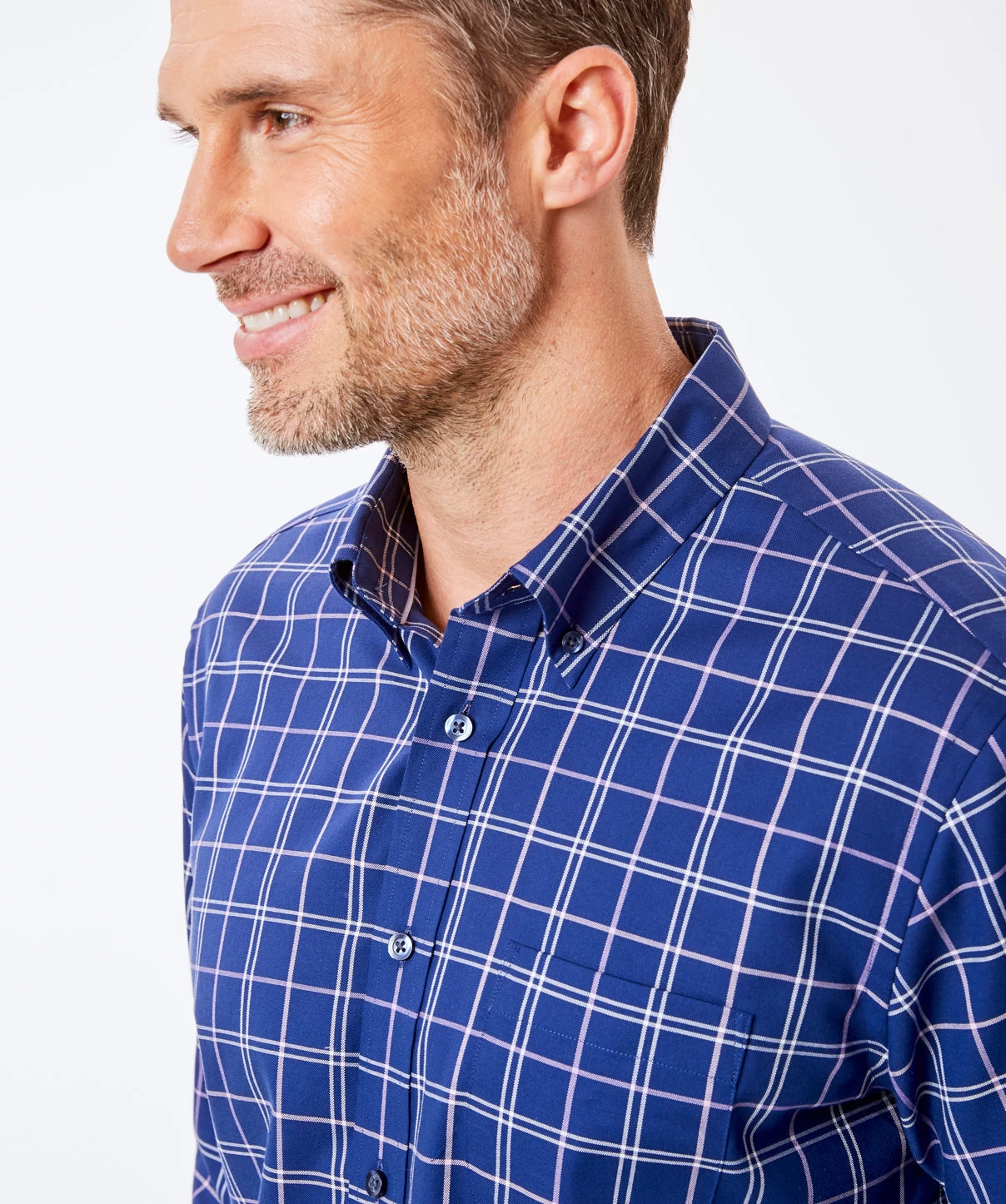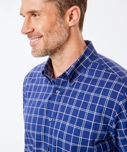 The beauty of an easy care shirt is that you never have to spend too much time preparing. Easy to iron, this royal blue check shirt will have you out the door in a flash and looking crease free for longer throughout the day.