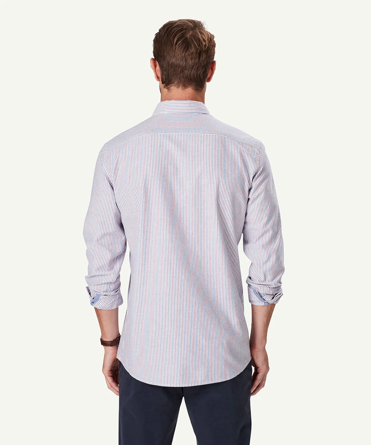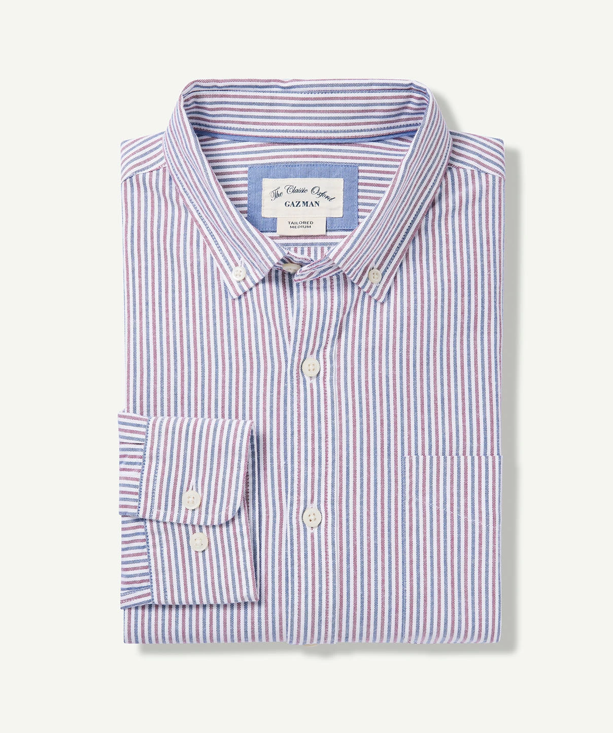 Our Tailored Oxford Stripe Shirt is a popular classic in our shirt range crafted from a soft casual washed cotton. Made in a tailored fit the Oxford shirt has a flattering cut that tapers towards the waist and emphasises the chest. Available in two easy to wear colours, pair this stripe shirt with our GAZMAN trousers for a smart office look, or tone it down with neutral chinos and sneakers for a neater casual look.