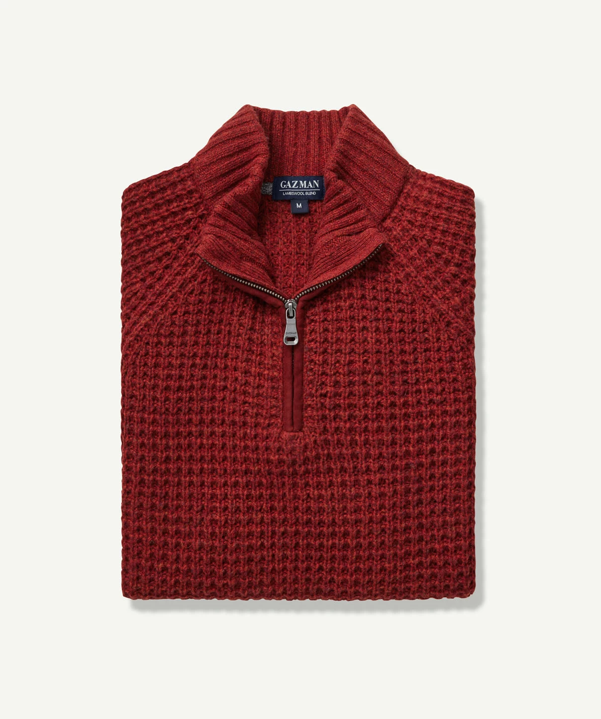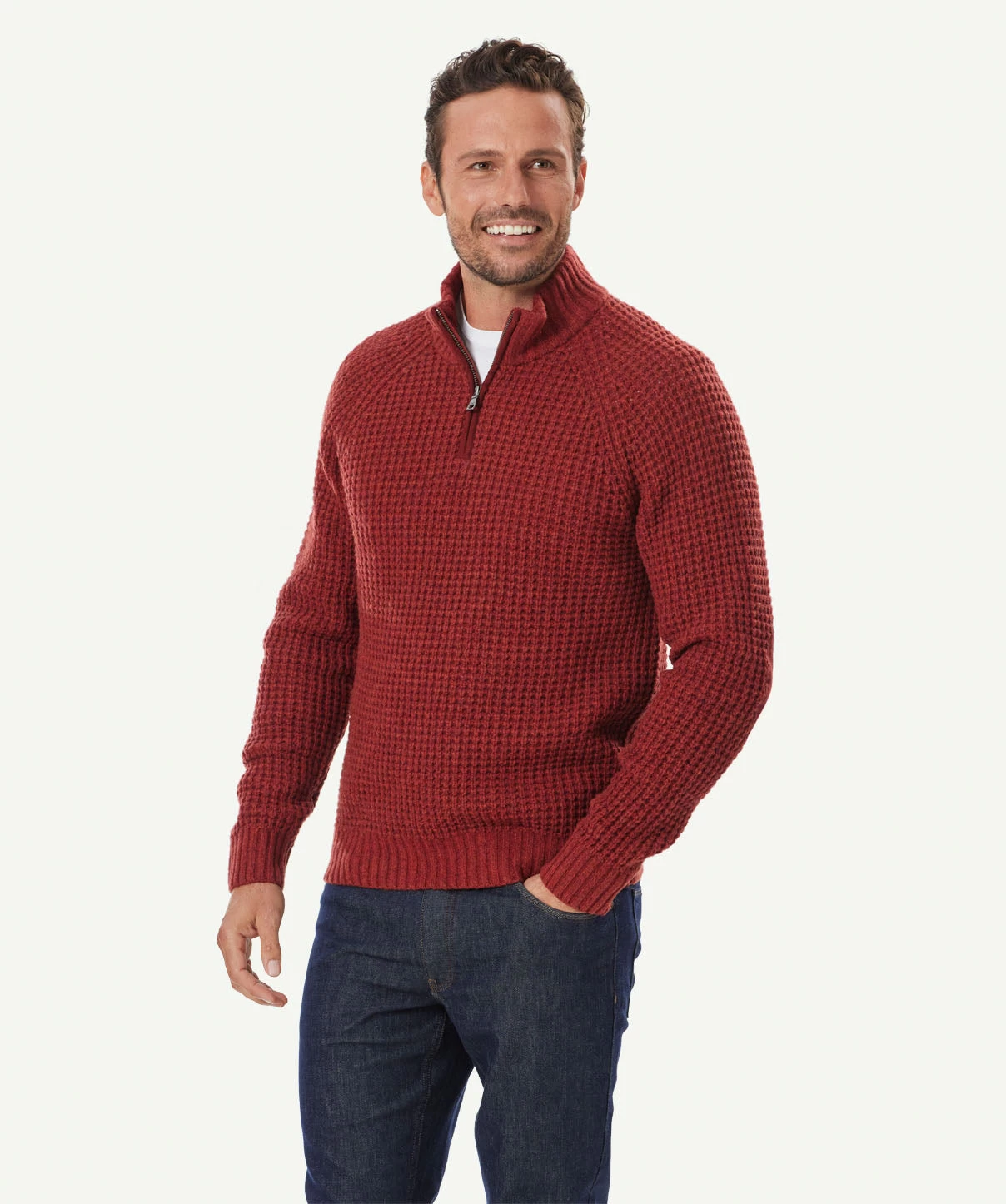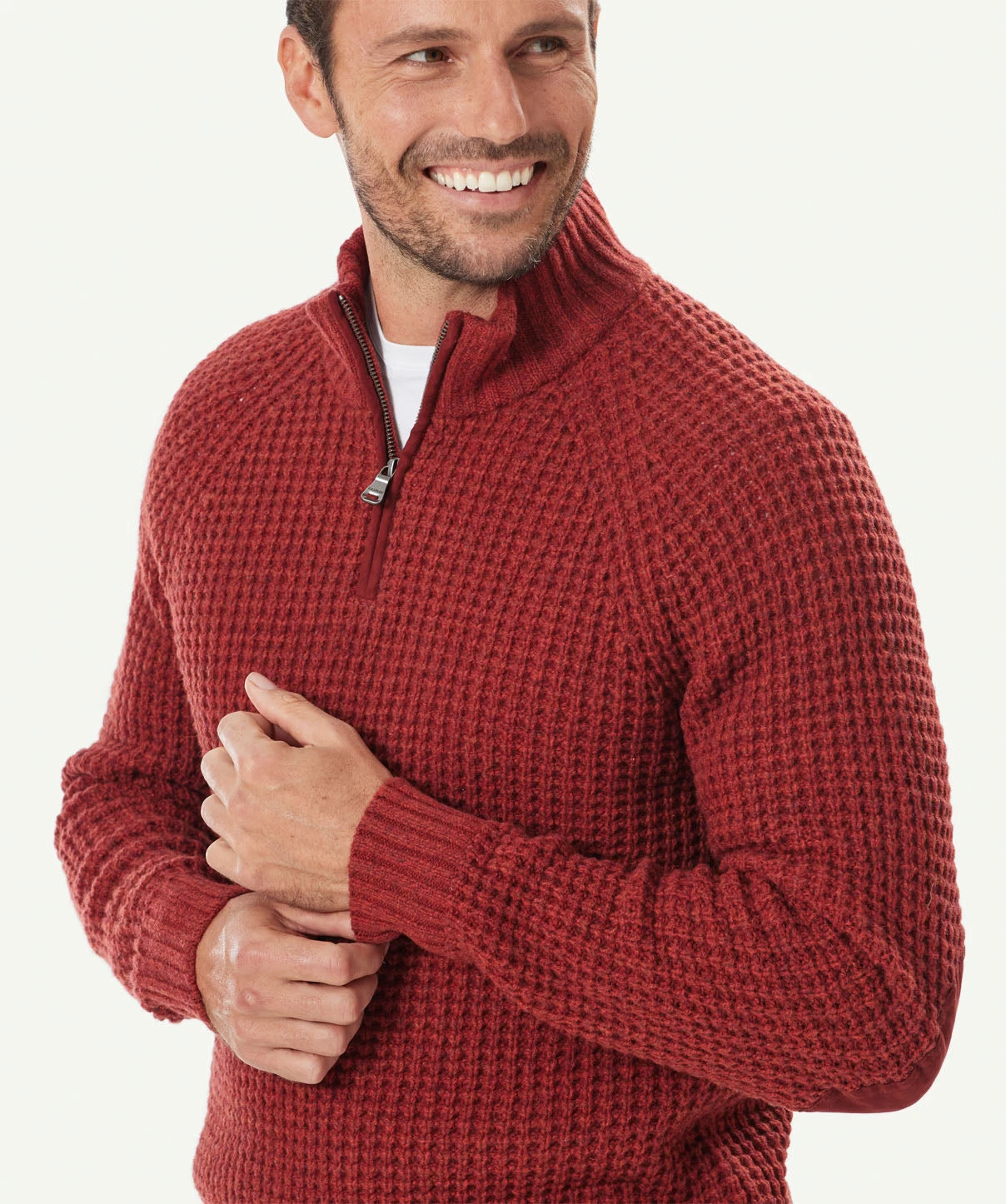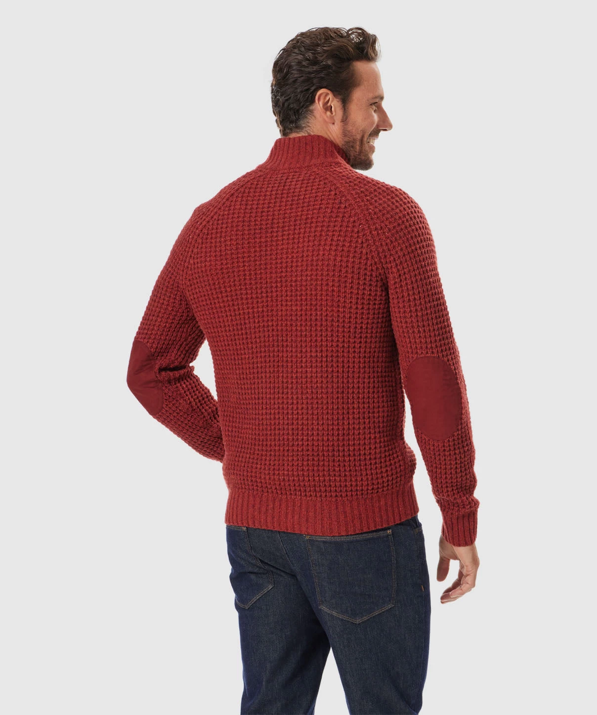 A staple in our winter range that is durable as well as smart, this thick mid weight knit is made from a Australian lambswool blend and features a 1/2 zip opening and contrast elbow patches for added style. It has a comfortable touch and is a great knit during the colder months. Wear yours with a basic t-shirt and jeans for smart casual styling.