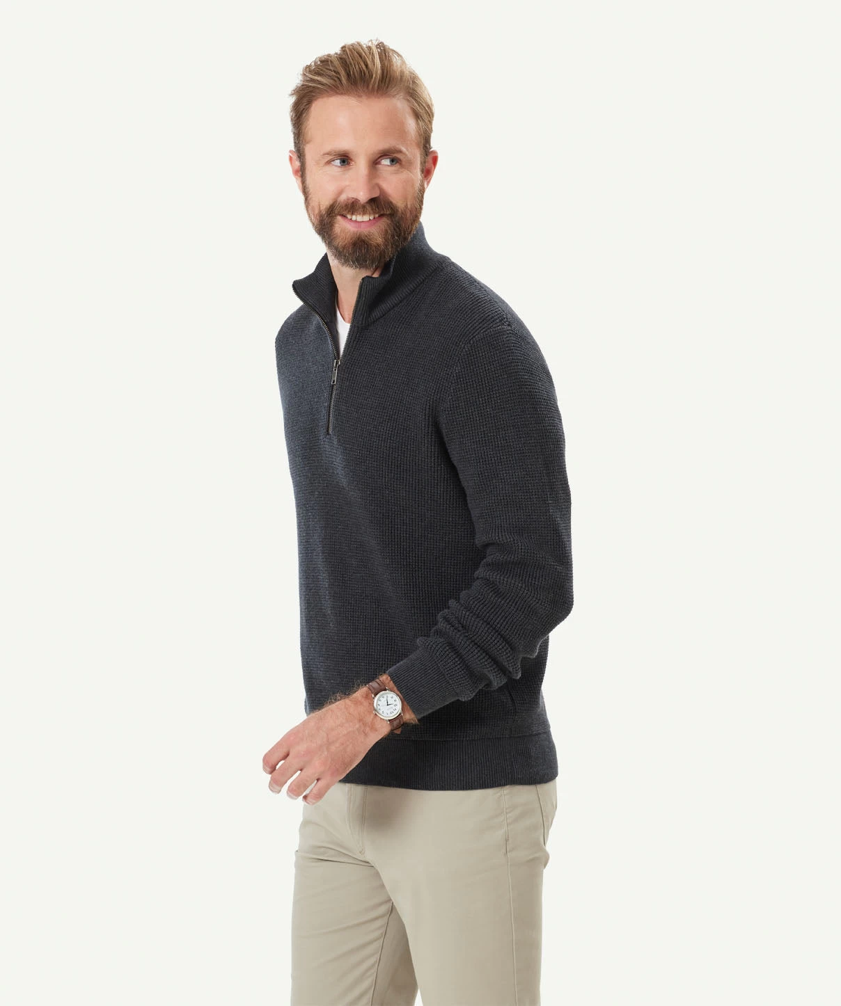 Stay warm and stylish this winter with our men’s Waffle Half Zip Knit. The 1/2 button placket neckline with a metal zip adds a modern touch to the classic design, while the midweight knit provides warmth without bulk. The rib neck, cuff, and hem make it comfortable and snug, ensuring you stay warm all day. Perfect for layering under jackets or wearing on its own, this knit is a must-have for any winter wardrobe.