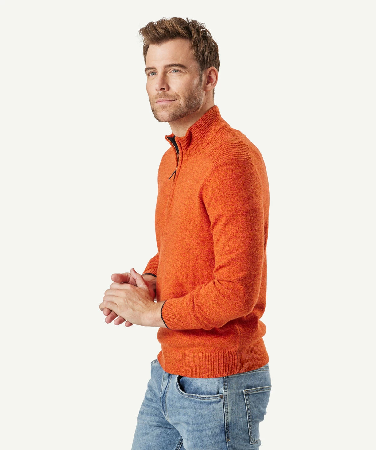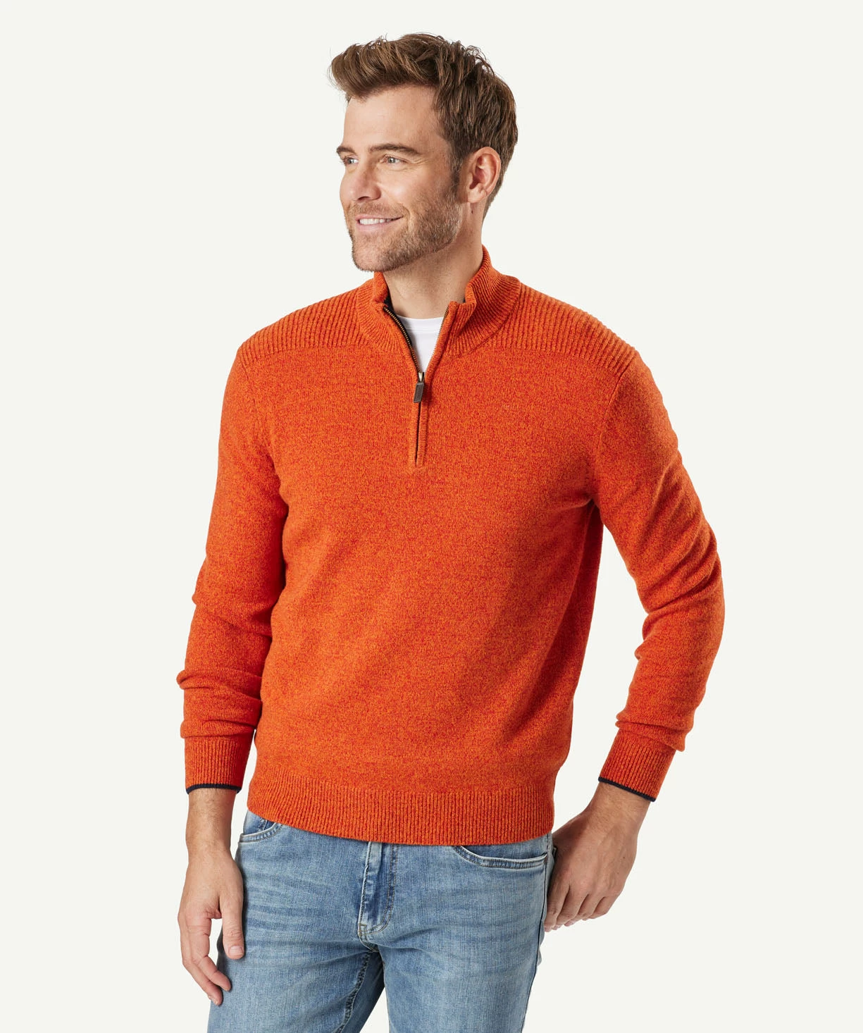 A perfectly honed classic, our wool blend half zip knit provides a smooth transition into winter. Made from a lambswool blend, this men’s knit is a timeless addition to your wardrobe. Available in an array of easy to wear colours.