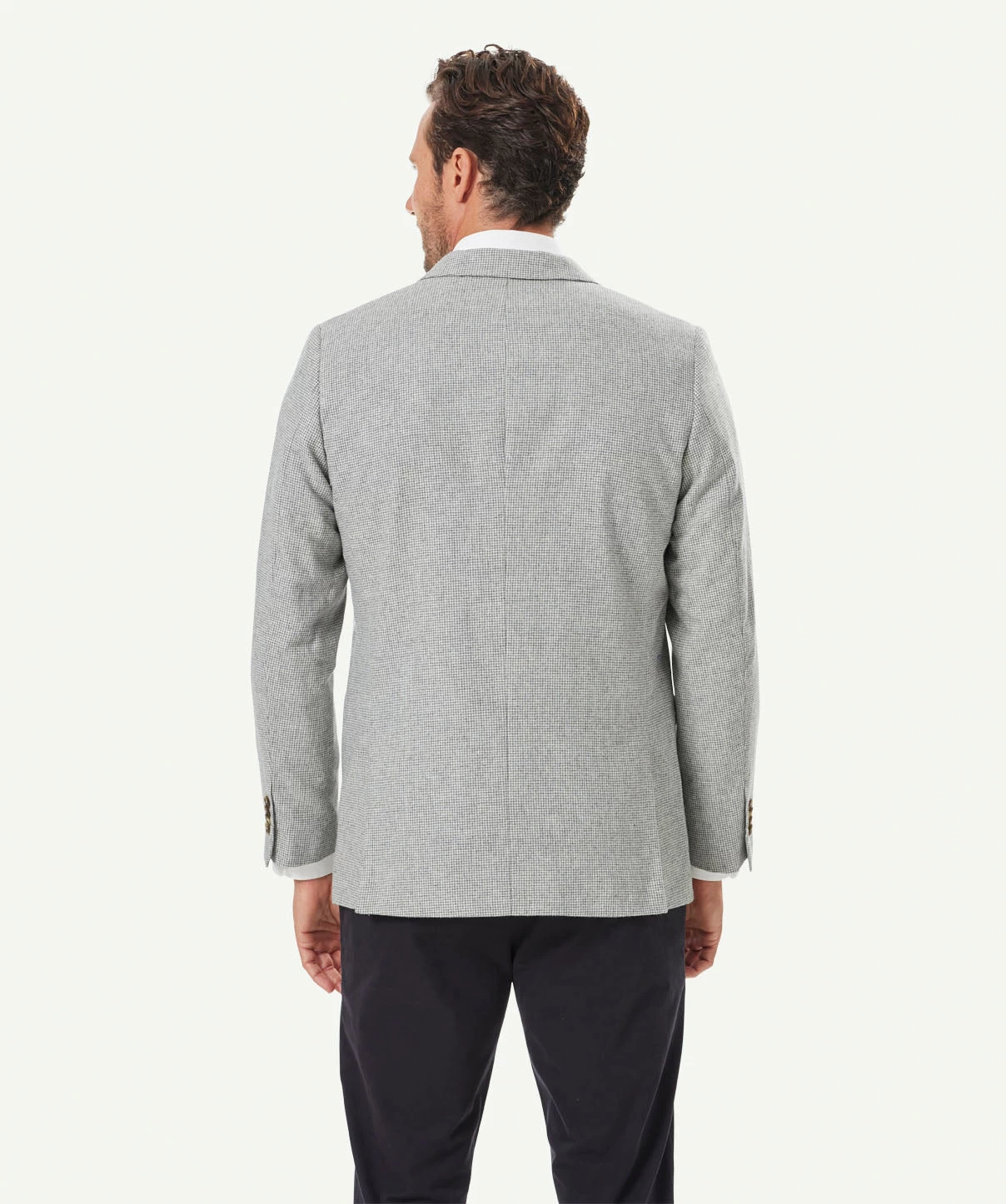 Essential for elevating your smart wardrobe, this Wool Blend Houndstooth Sports Jacket is constructed from a mixture of luxury yarns creating one of our softest jackets to date that has a great drape on the body. A fully lined jacket with classic 2 button styling with internal and external pocket features and a double vent back for ease of movement. Dress this jacket up with a pair of beige chinos and dress shoes for more formal events or dress it down with a pair of jeans and sneakers for casual appeal.